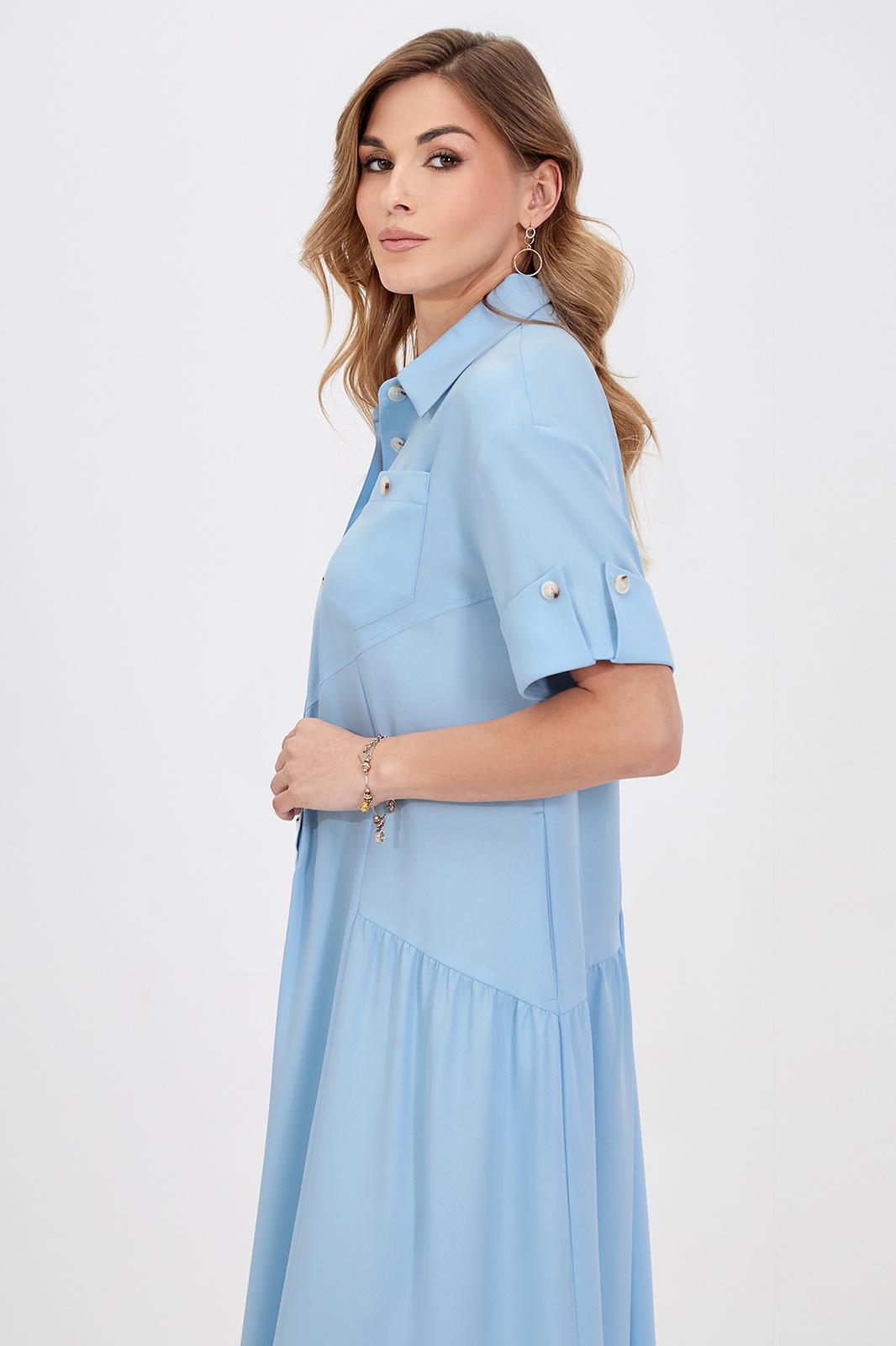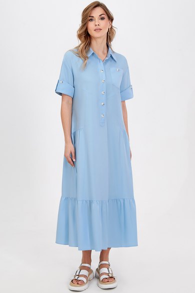 Это платье-рубашка с отложным воротником и короткими рукава с отделочными фигурными манжетами идеально впишется в городские образы в стиле кэжуал. Легкая вискозная ткань приятна для кожи и красиво струится во время носки. Застёжка на пуговицы позволяет регулировать глубину выреза. Модель свободного кроя дополнена оборками, отделочным карманом по переду и функциональными карманами в боковых швах. Длина позволяет носить платье как на каблуке, так и на плоском ходу.