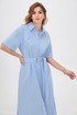 Это модное платье-рубашка с тонкими полосками,сочетает в себе шик и современность. Модная длина мидакси, разрезы в боковых швах и пояс,подчёркивающий талию- придают платью женственный характер. Рубашечный воротник добавляет образу грациозности, а застёжка на пуговицы по всей длине позволяет регулировать глубину выреза декольте. Нагрудные карманы-обманки и короткие рукава с отложными манжетами - завершают дизайн. Для придания комфорта использована приятная хлопковая ткань. Лучше не бывает!