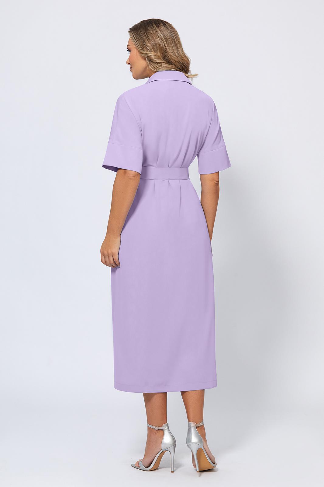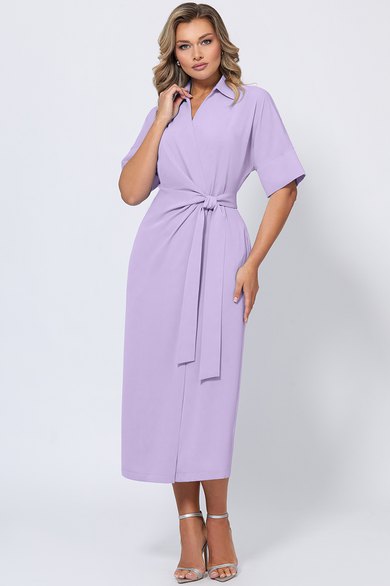 Восхитительное платье на запах выполнено из приятной однотонной ткани. Интересный крой делает платье оригинальным и нарядным. Модель с отложным воротником с отрезной стойкой, V-образным вырезом горловины и цельнокроеными рукавами с манжетами. Длинный тканевый пояс можно завязать в элегантный бант, который станет еще одним украшением платья.