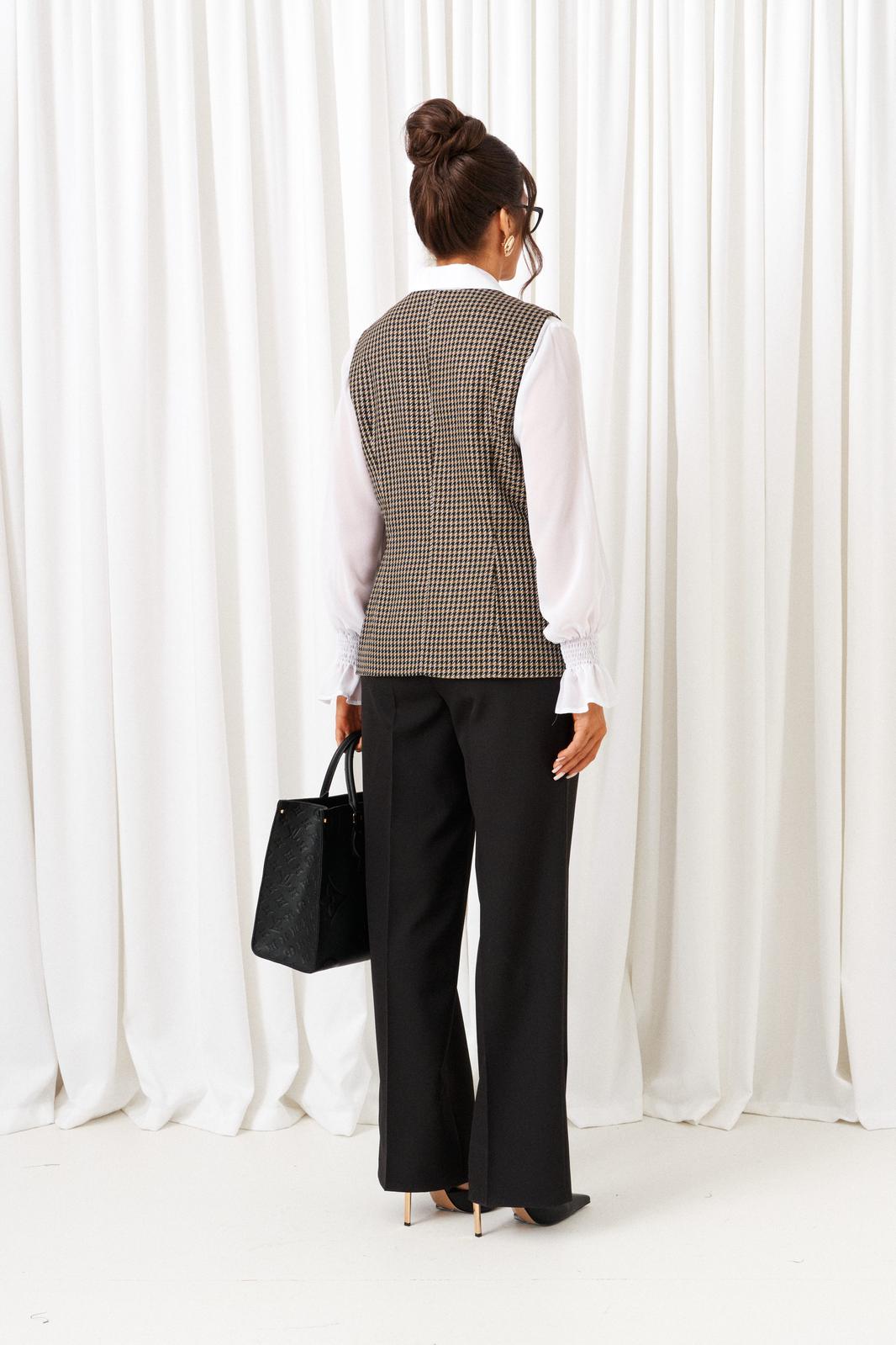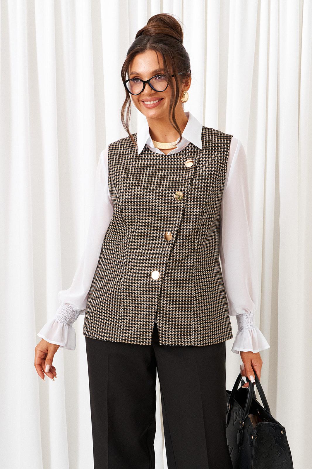 Деловой комплект 3-ка, состоящий из трех предметов: жилета, брюк и блузки.