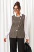 Жилет полуприлегающего силуэта; выполнен из костюмно-смесового полотна отличительного дизайна;