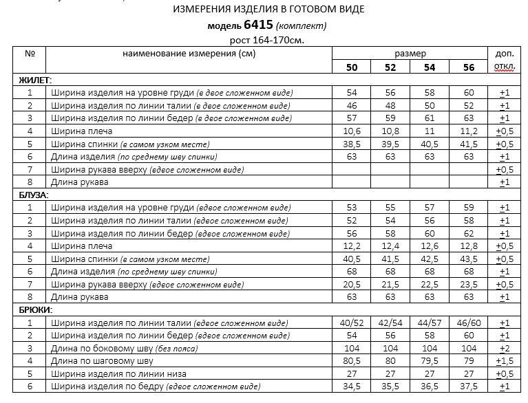 - Тип ткани: жилет – вискоза 89%; акрил 8%; эластан 3% брюки – вискоза 60%; п/э 37%; спандекс 3% блузка – пэ 75%; вискоза 25%