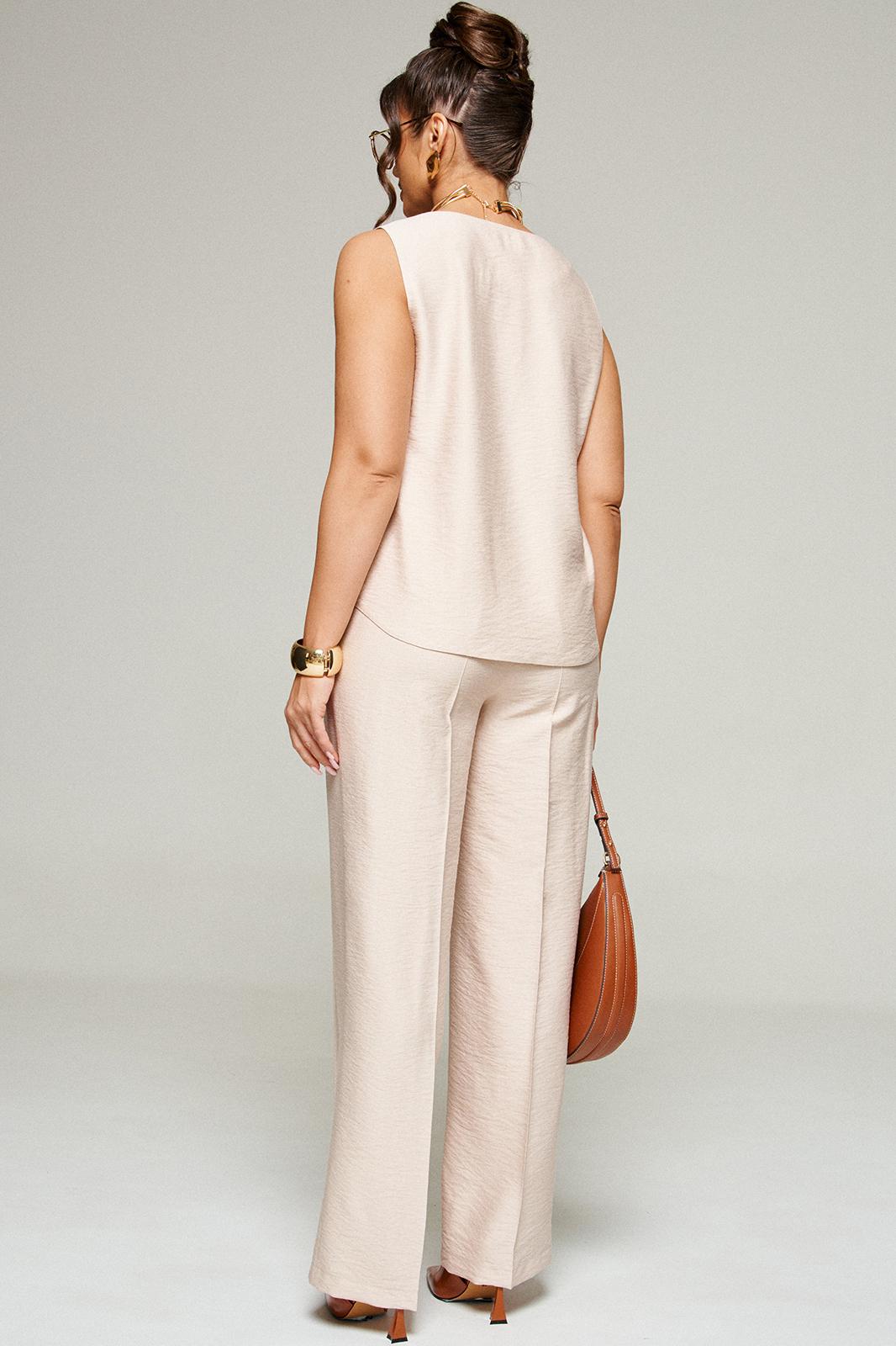 - Тип ткани: топ, брюки – лен 80%; вискоза 20% блузка –вискоза 87%; нейлон 13%