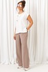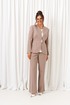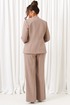 - Тип ткани: жакет, брюки – вискоза 61%; пэ 22%; пан 14%; эластан 3% блузка – пэ 68%; вискоза 27%; спандекс 5%