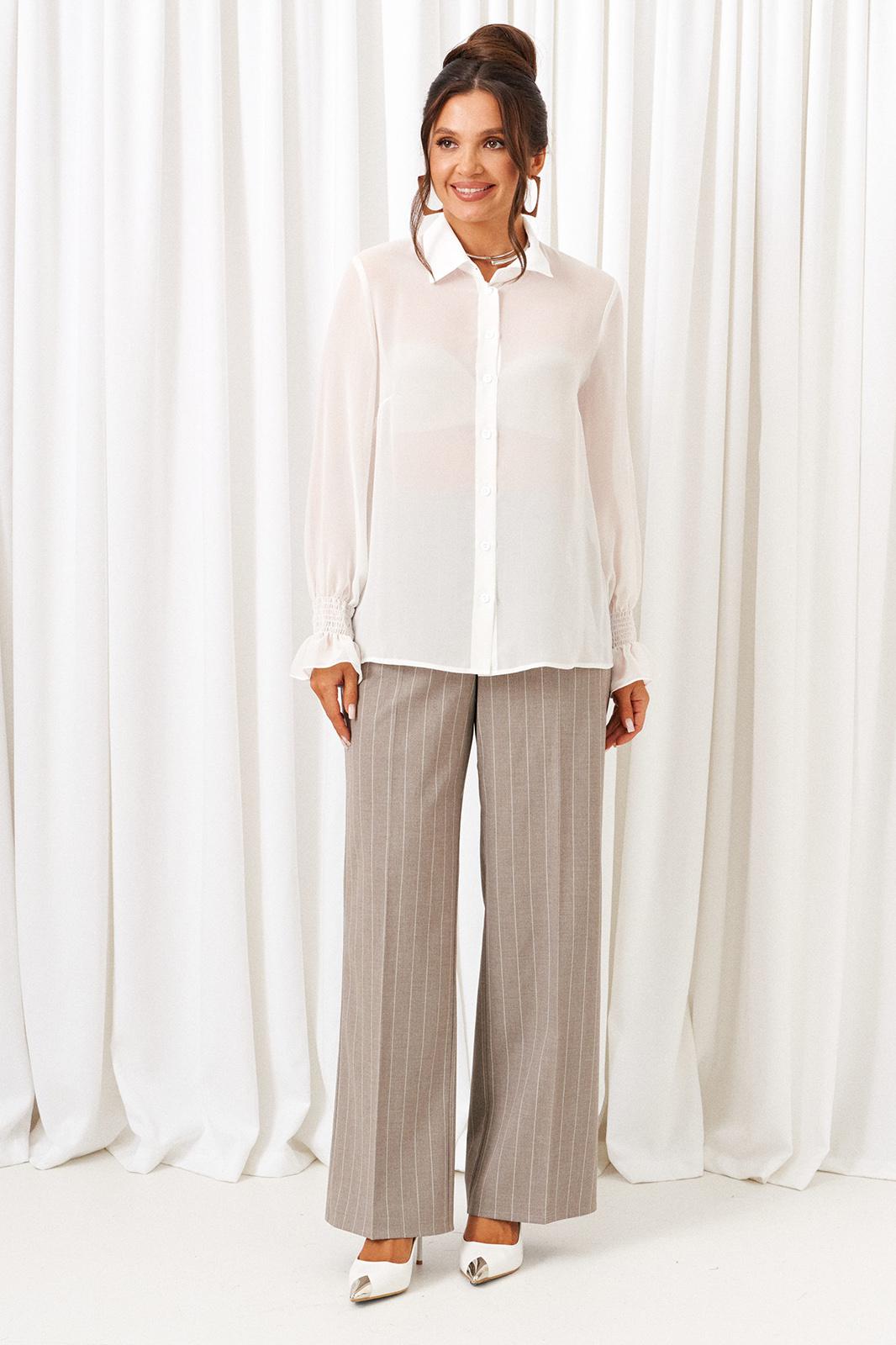 Блузка рубашечного типа выполнена из легкой, струящейся шифоновой ткани.