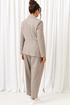 Спинка разрезная по среднему шву с двумя вытачками на уровне талии. В верхней части среднего шва предусмотрен небольшой разрез с фиксацией на одну навесную петлю и пуговицу.