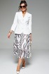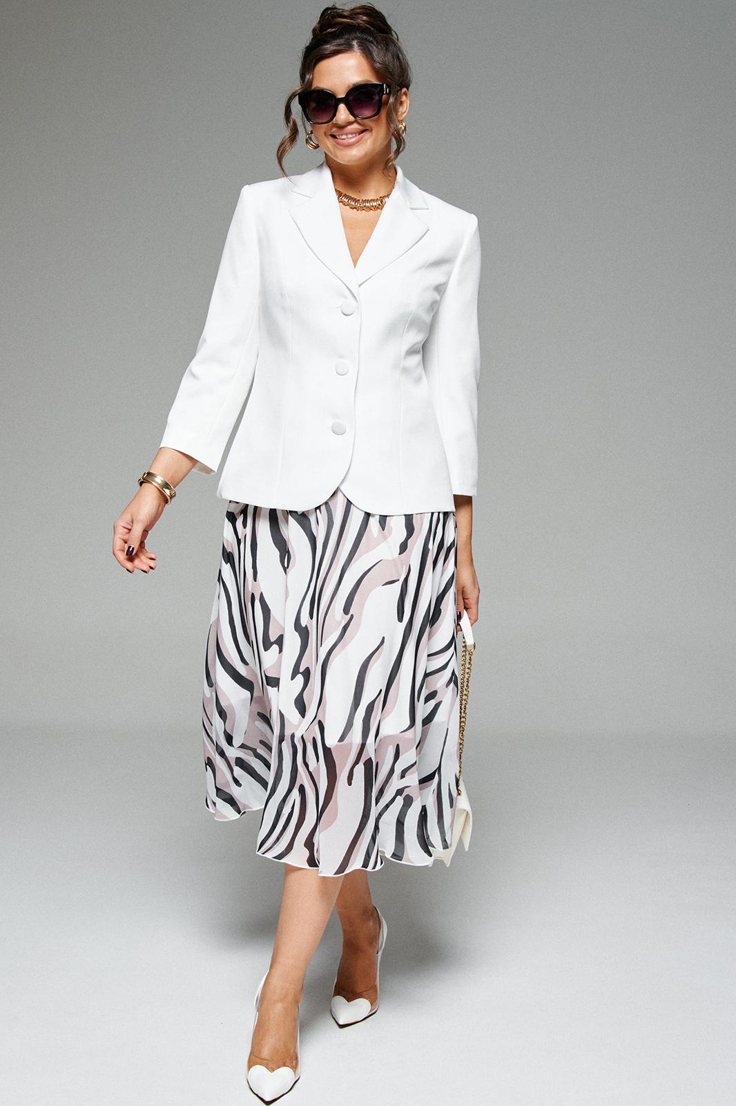 - Тип ткани: (жакет) – вискоза 60%; пэ 37%; спандэкс 3% (юбка) – пэ 75%; вискоза 25%