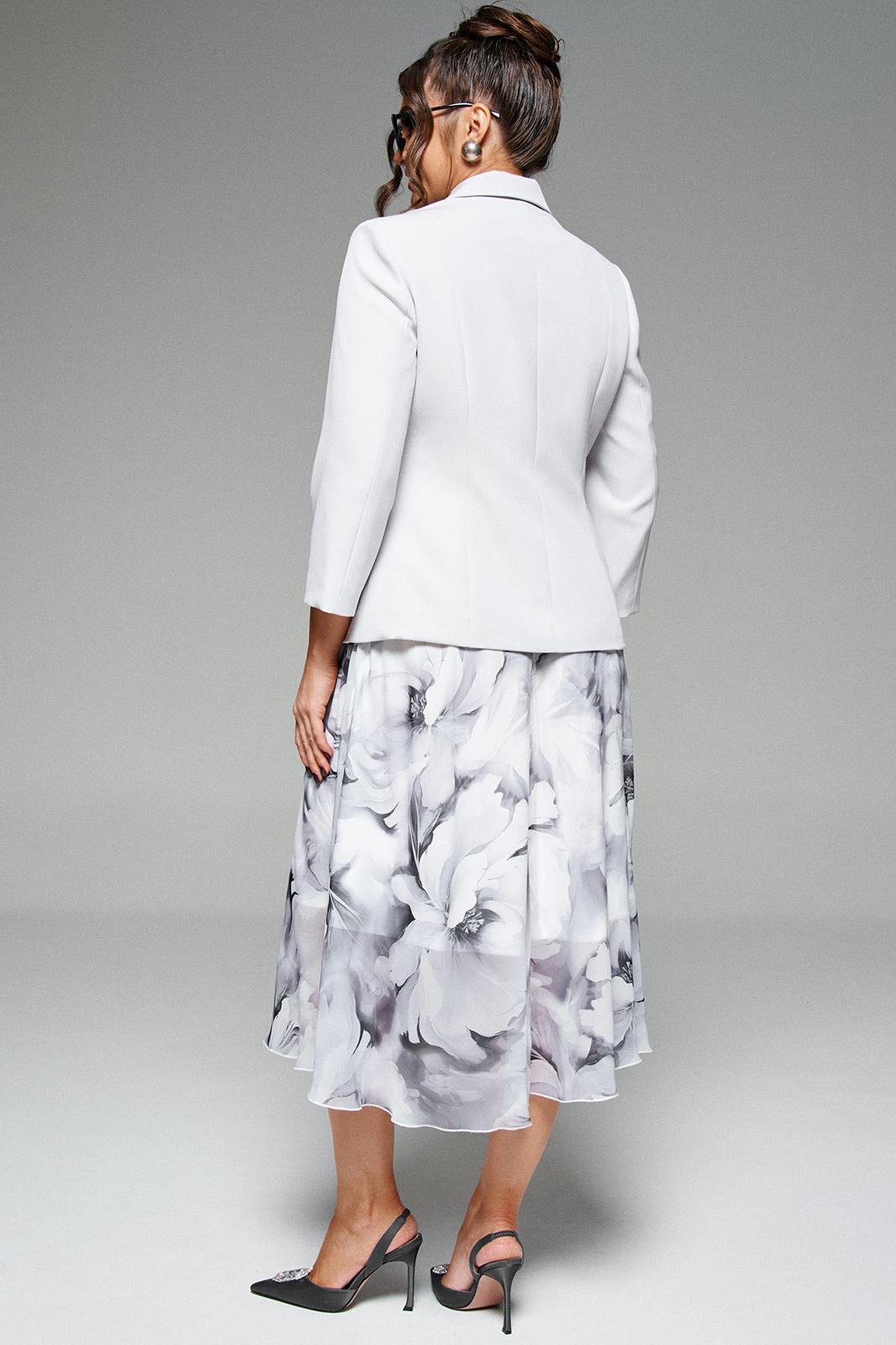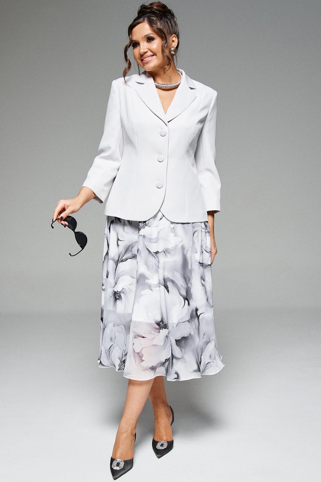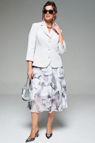 - Тип ткани: (жакет) – вискоза 60%; пэ 37%; спандэкс 3% (юбка) – пэ 75%; вискоза 25%