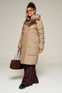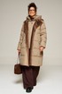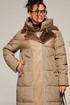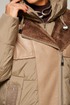 Капюшон с манишкой съемный (на потайных пуговицах) умеренного объема с дополнительной двусторонней застежкой молнией по центру. По периметру капюшона протянут шнур в цвет изделия с декоративными металлическими фиксаторами.