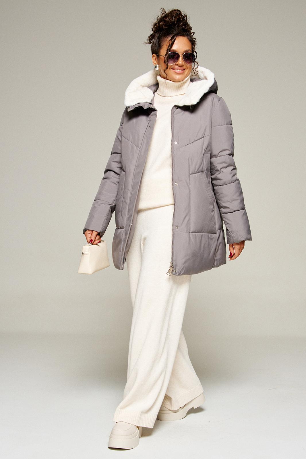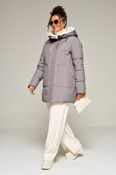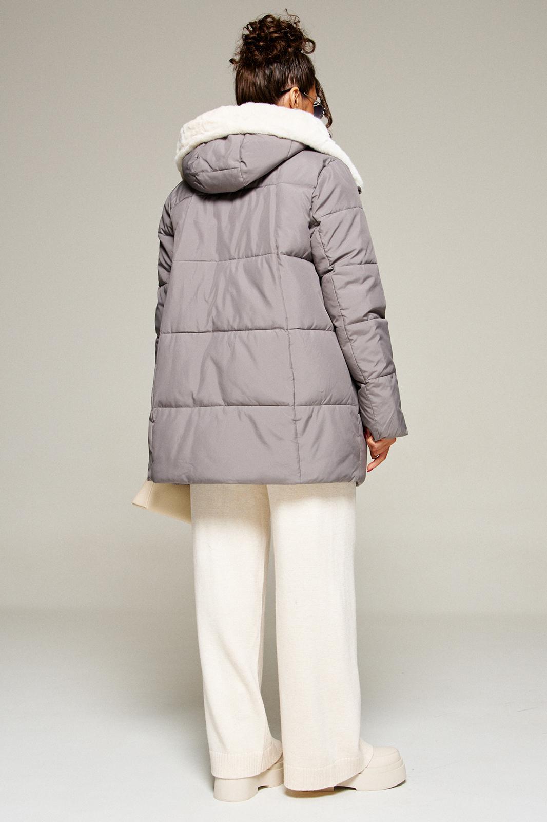 Капюшон с застежкой спереди умеренного объема. По периметру капюшона с внутренней стороны выполнена оторочка из искусственного меха, которая выполняет декоративную и защитную функции, создавая дополнительное тепло и защиту от ветра и холода.