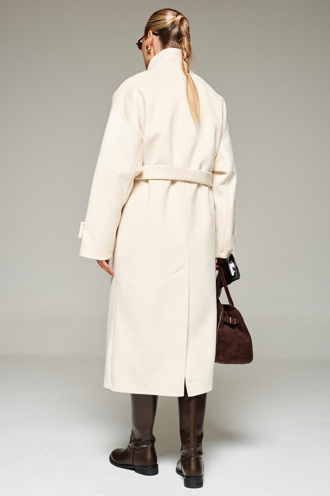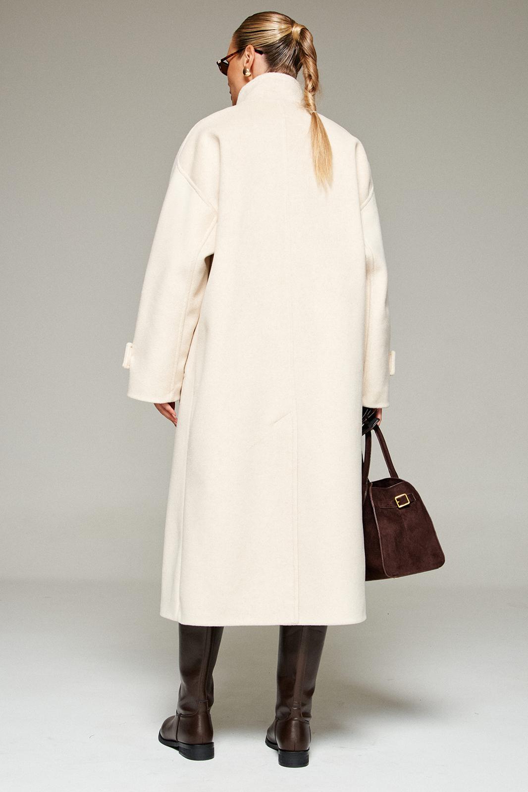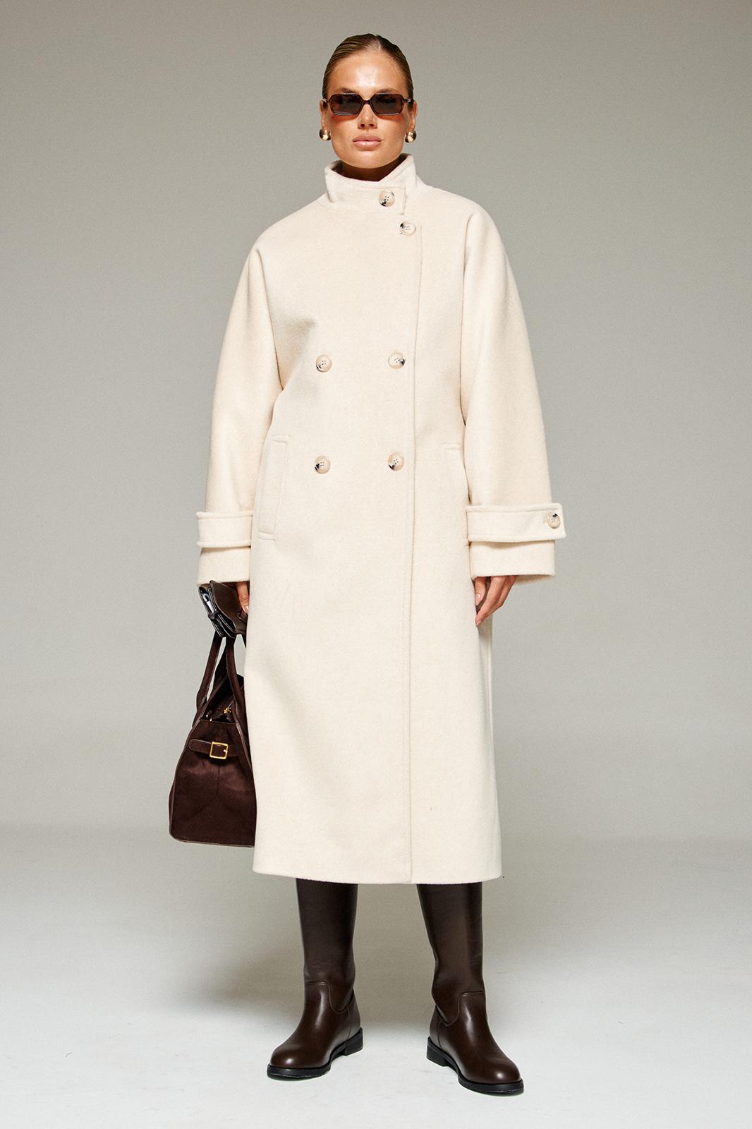 Пальто выполнено из шерстяной ткани, которая обеспечивает теплоизоляцию и защиту от ветра и влаги, подходит для межсезонья и теплой зимы. Двубортное, на подкладке. Изделие рассчитано на температурный режим от +10 до -5 градусов. Модель прямого силуэта актуального покроя «летучая мышь»; предназначена для повседневного использования.
