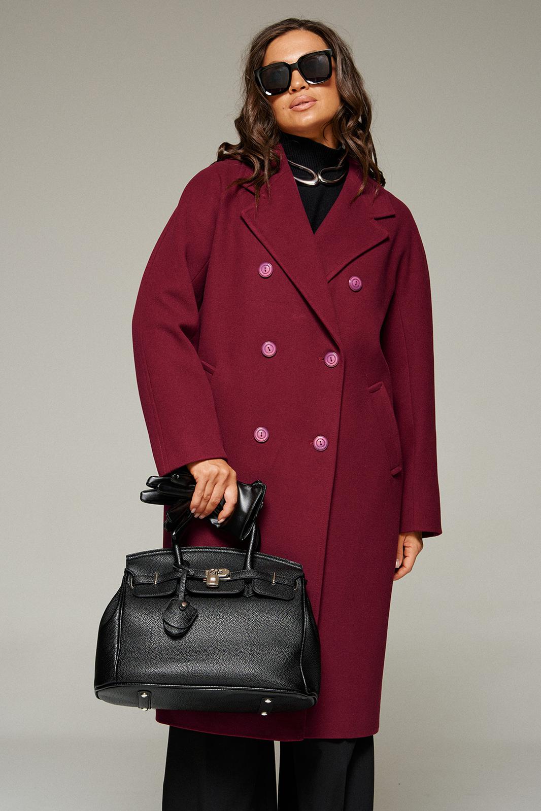 Пальто выполнено из шерстяной ткани, которая обеспечивает теплоизоляцию и защиту от ветра и влаги, подходит для межсезонья и теплой зимы. Двубортное, на подкладке. Изделие рассчитано на температурный режим от +10 до -5 градусов. Модель прямого силуэта, чуть расширенная к низу, покроя «летучая мышь»; предназначена для повседневного использования.