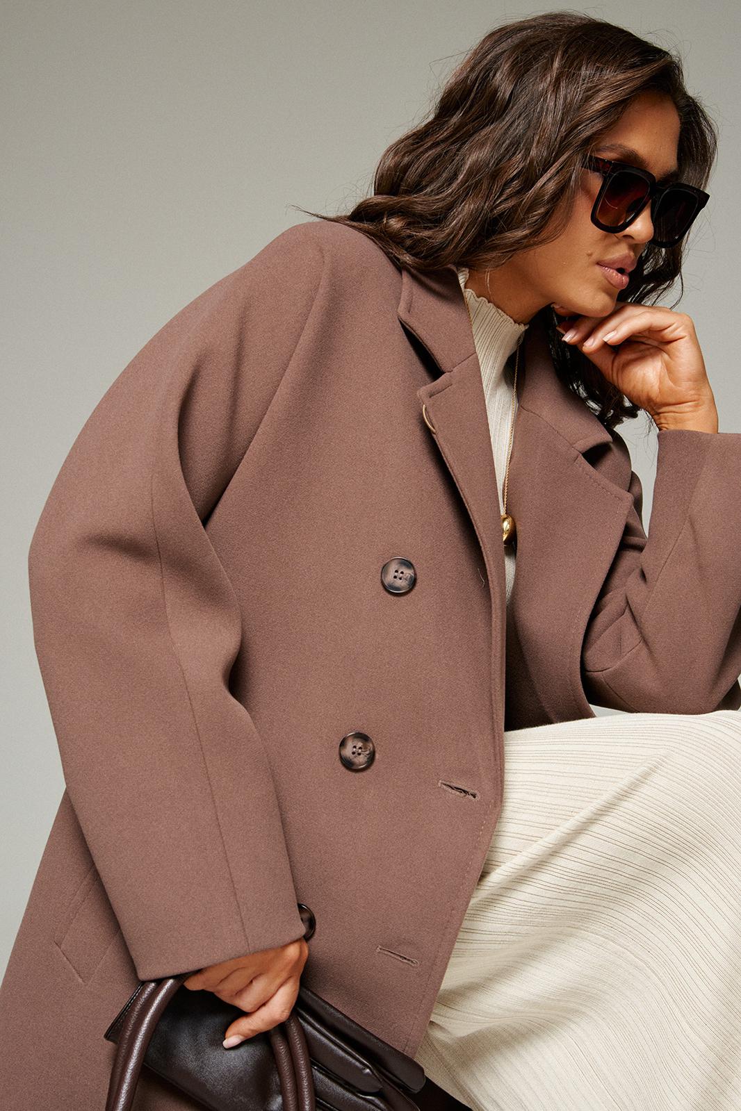 Пальто выполнено из шерстяной ткани, которая обеспечивает теплоизоляцию и защиту от ветра и влаги, подходит для межсезонья и теплой зимы. Двубортное, на подкладке. Изделие рассчитано на температурный режим от +10 до -5 градусов. Модель прямого силуэта, чуть расширенная к низу, покроя «летучая мышь»; предназначена для повседневного использования.