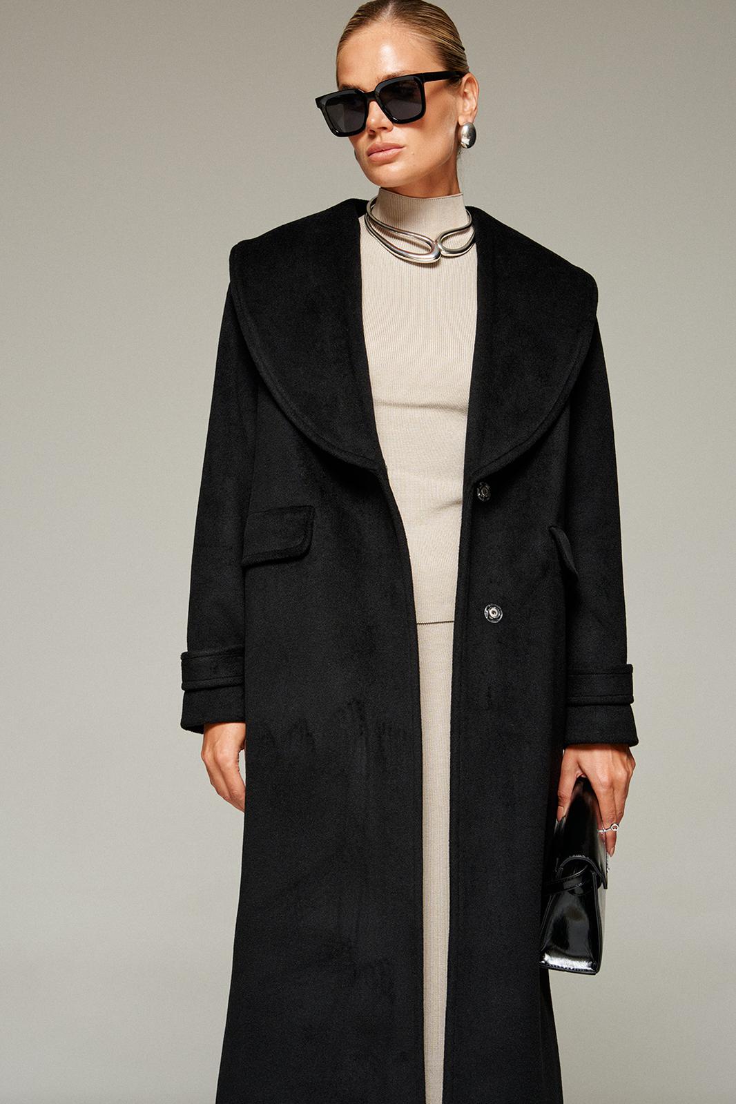 Пальто выполнено из шерстяной ткани, которая обеспечивает теплоизоляцию и защиту от ветра и влаги, подходит для межсезонья и теплой зимы. Однобортное, на подкладке. Изделие рассчитано на температурный режим от +10 до -5 градусов. Модель прямого силуэта, базового кроя с удлиненной линией плеча; предназначена для повседневного использования.