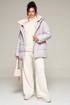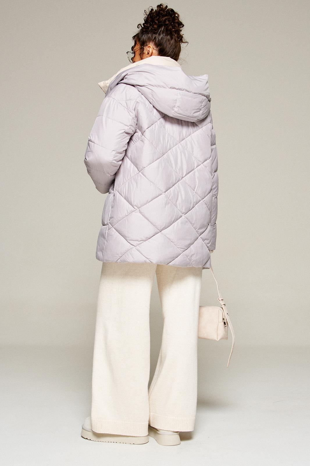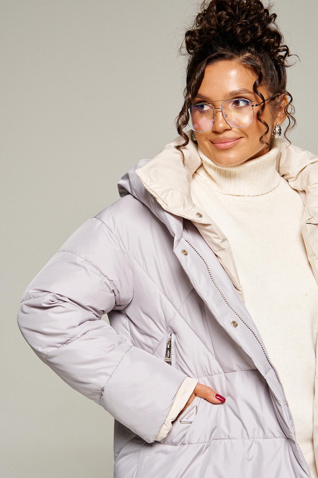 Застежка центральная на двустороннюю молнию от уровня груди до низа и кнопки по краю борта.