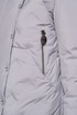 Перед с центральной вертикальной вставкой, переходящей в капюшон, а также с фигурным подрезом на уровне талии и с симметричными боковыми карманами от него, фиксируемые на кнопку. Выше подреза расположены функциональные вертикальные карманы на молнии с декоративным металлическим бегунком.