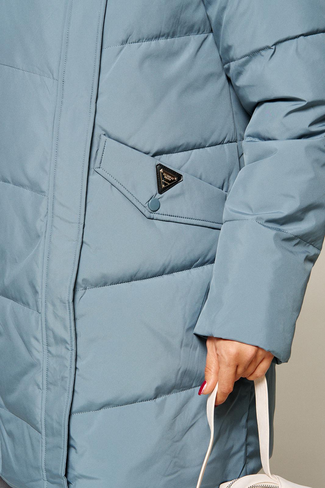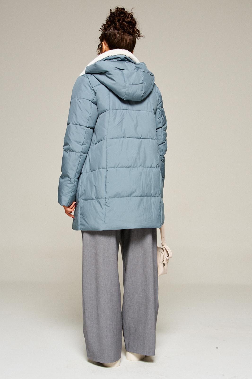 Воротник пиджачного типа с возможностью застегивания до верха. Внутренняя часть воротника и лацканы обработаны искусственным мехом.