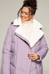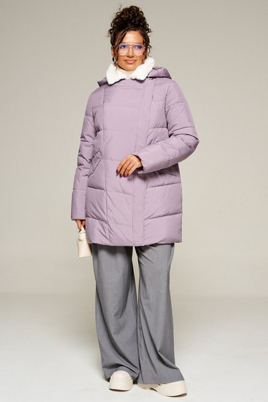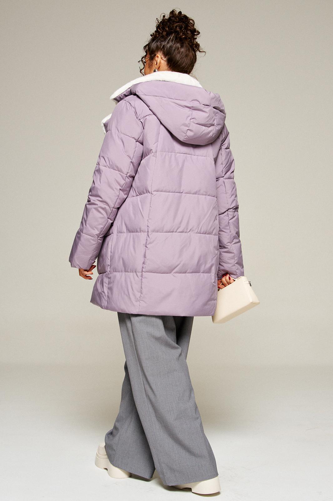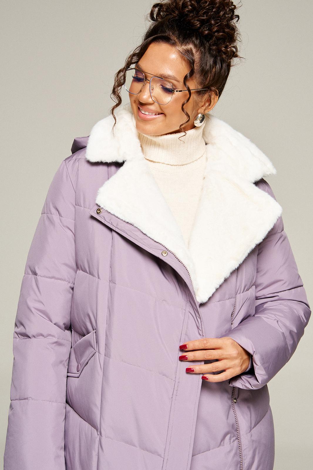 Воротник пиджачного типа с возможностью застегивания до верха. Внутренняя часть воротника и лацканы обработаны искусственным мехом.