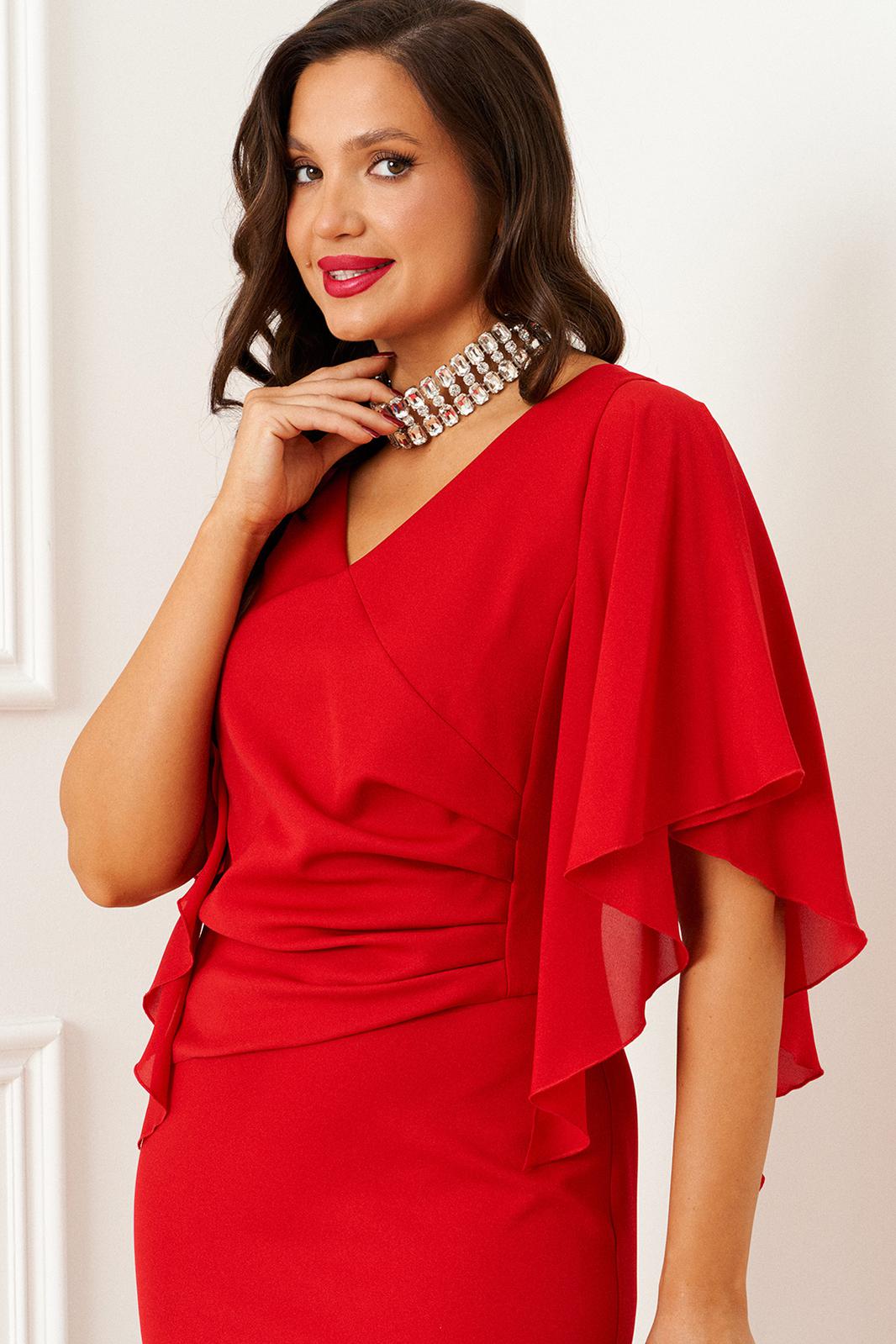 Платье женское, прилегающего силуэта в романтическом стиле, средней длины, выполнено из костюмно-смесового полотна в комбинации с лёгким, струящимся шифоном. Лиф переда на подкладке.