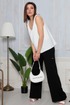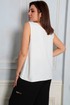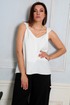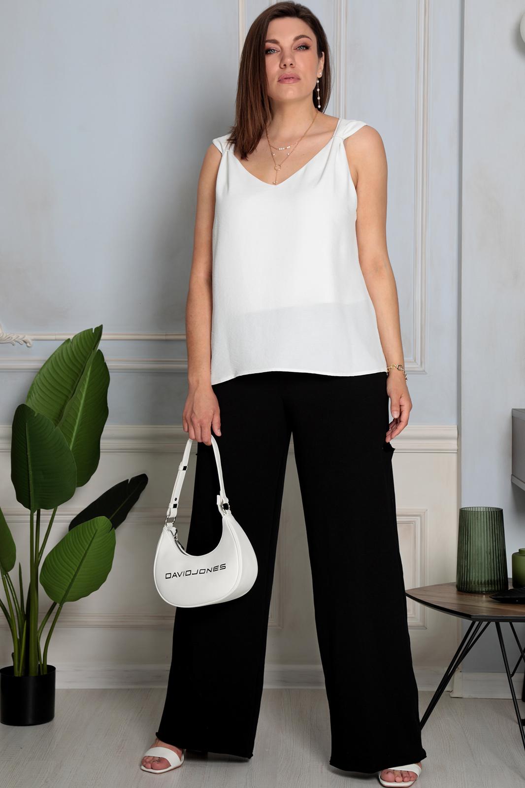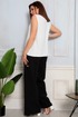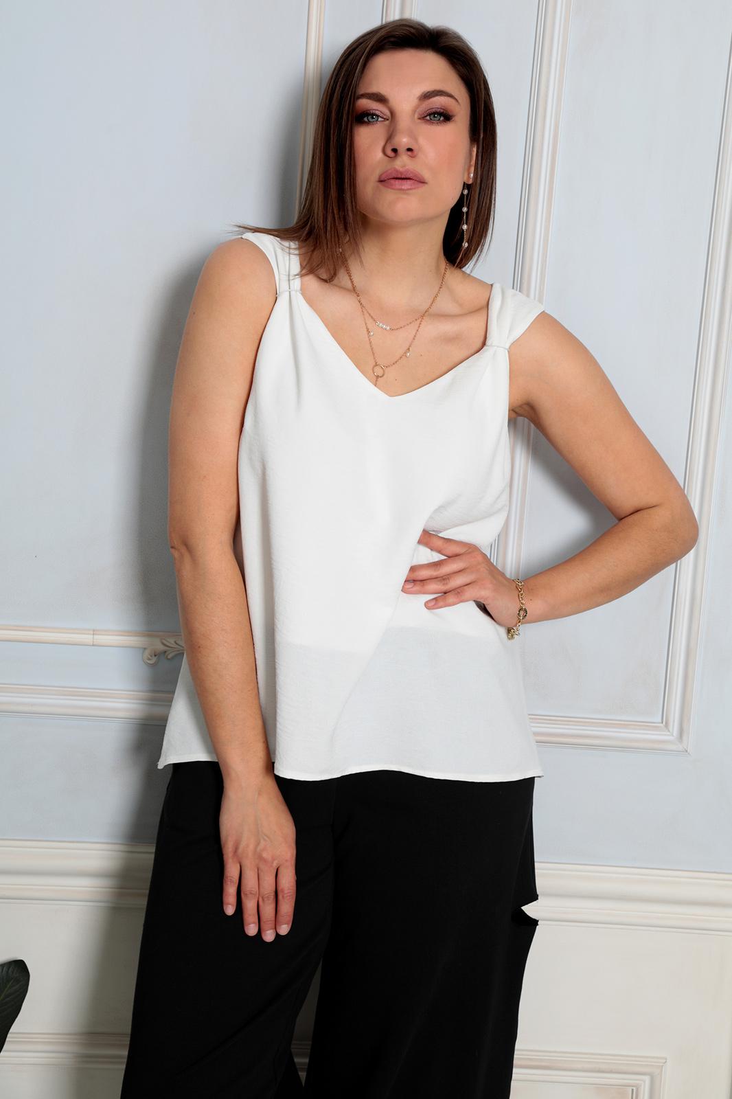 Блуза-топ полуприлегающего силуэта, слегка расклешённая к низу. Выполнена из лёгкой, струящейся ткани. Отлично впишется в любой гардероб, т.к. её можно сочетать со многими предметами одежды. Идеально подходит для многослойных образов, например под жакет или рубашку. В качестве декоративной отделки используются полукольца на бретелях, с помощь которых создается оригинальная форма выреза по переду. Длинна изделия позволяет менять образы , заправлять или носить на выпуск.