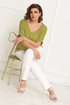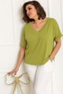 Стильная блуза полуприлегающего силуэта. Прекрасный вариант для носки в жаркую погоду, т.к. выполнена из лёгкого трикотажа с содержанием вискозы. Блуза имеет укороченный цельнокроёный рукав с лёгким эффектом «летучей мыши», низ которого, обработан обтачкой с подгибкой на лицевую сторону.