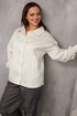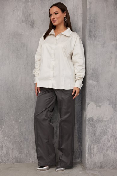Блуза свободного кроя с отложным воротником на планке с застёжкой на петли – пуговицы. Рукав со спущенной проймой на манжете. Спинка на кокетке, которая декорирована пуговками. Низ спинки имеет фигурную форму.
