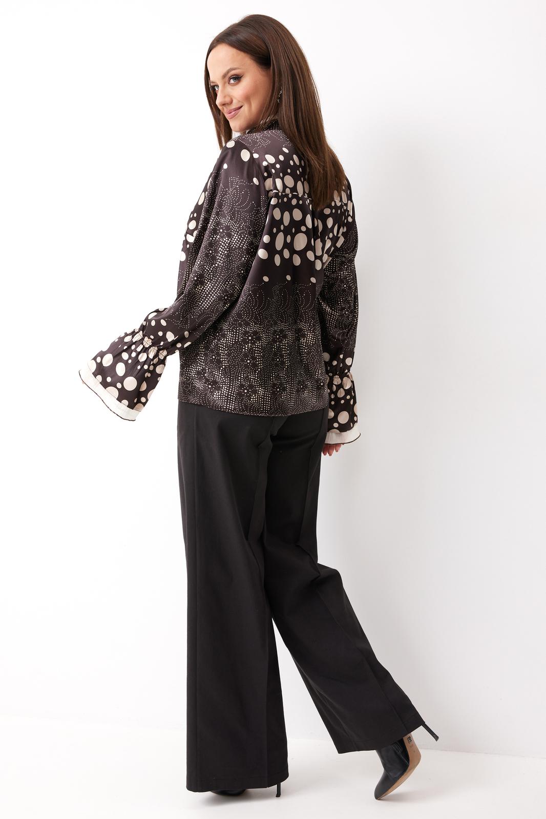 Если Вы мечтаете о блузе, которая подчеркнёт Вашу женственность и добавит образу элегантность, у нас есть готовое решение! Эта блуза из мягкой ткани с переливом в глубоком шоколадном цвете с нежной шифоновой отделкой – именно то, что Вам нужно! Мягкий блеск роскошной ткани, изящные элементы отделки придают Вашему образу утончённость и лоск во время вечернего выхода, деловой встречи либо отдыха с друзьями в любимом кафе.