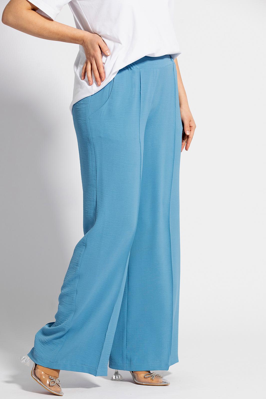 Яркие, летние брючки свободного кроя. Ткань «тянется», очень мягкая, струящаяся и приятная на ощупь. Эта модель создана для тех, кто любит одеваться стильно. Брюки палаццо – настоящий тренд этого сезона. Главная особенность в том, что они делают ножки визуально длиннее. По передней и задней части застрочены стрелки. Пояс притачной, на эластичной резинке. В боковых швах имеются карманы с отрезным бочком.