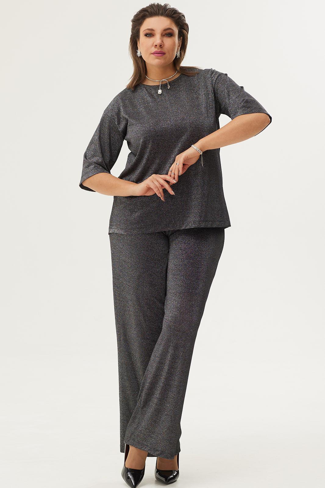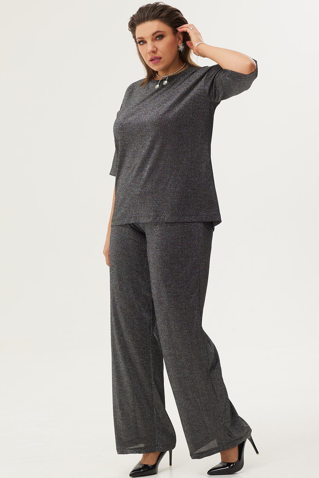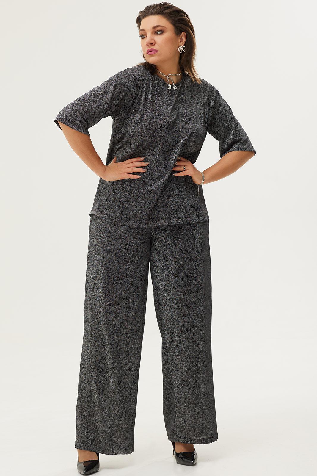 Нарядный, стильный комплект, состоящий из блузы и актуальных брюк палаццо, сделает Вас настоящей звездой вечера! Комплект выполнен из тонкого, растяжимого трикотажа с люрексной нитью, который подарит лёгкость и невесомость вашему образу.