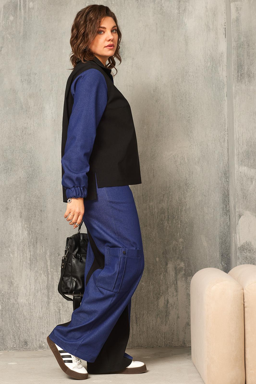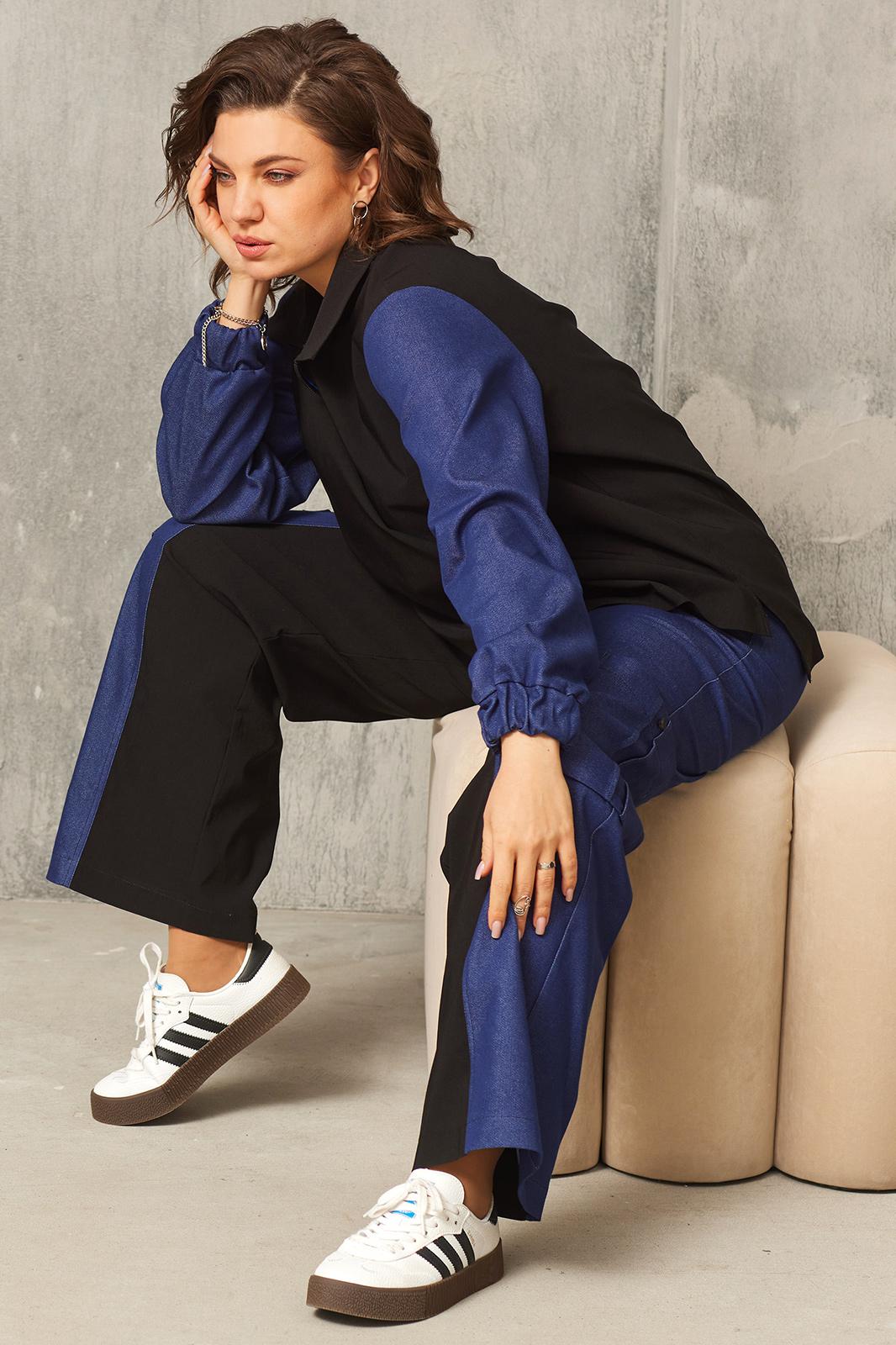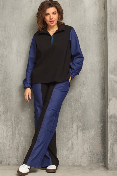 Предлагаем Вам эксклюзивный, современный сет, состоящий из лонгслива и брюк, выполненных из уникального сочетания растяжимого структурированного денима, и чёрного растяжимого текстиля, которые прекрасно держат форму. Удачная игра цвета и текстур в этой модели невероятно стройнит силуэт, «вытягивает» ножки делая Ваш образ неповторимым и ярким.