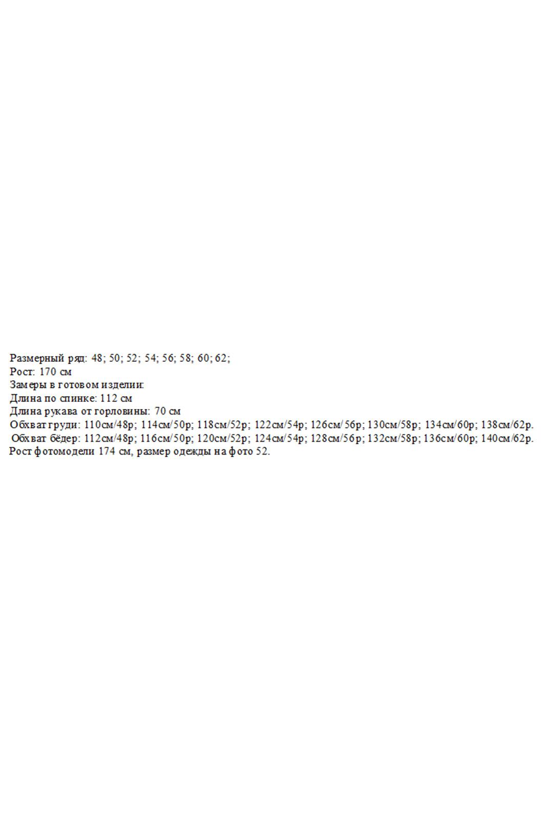 Рукав со спущенной проймой, а так же настрочные карманы на передней части, выполнены из мелких пайеток для создания праздничного и нарядного образа. Округлый вырез горловины обработан притачной обтачкой из кашкорсе. Низ рукава обработан широкой манжетой из основной ткани. Спинка длиннее переда и имеет форму полукруга по низу.