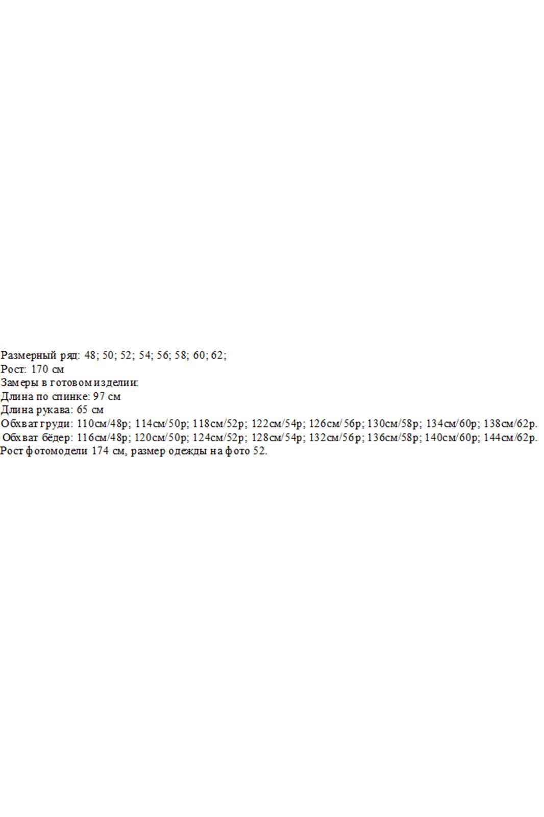 Горловина имеет V-образный вырез, от которого по передней части до низа настрочена атласная лента. И декорирована бархатным бантом с пуговицей, из серебристых страз. В боковых швах имеются карманы. Рукав втачной, выполнен из хлопкового, мягкого трикотажа.