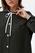 Рукав втачной, объёмной формы, по низу обработан с помощью растяжимой трикотажной манжеты.