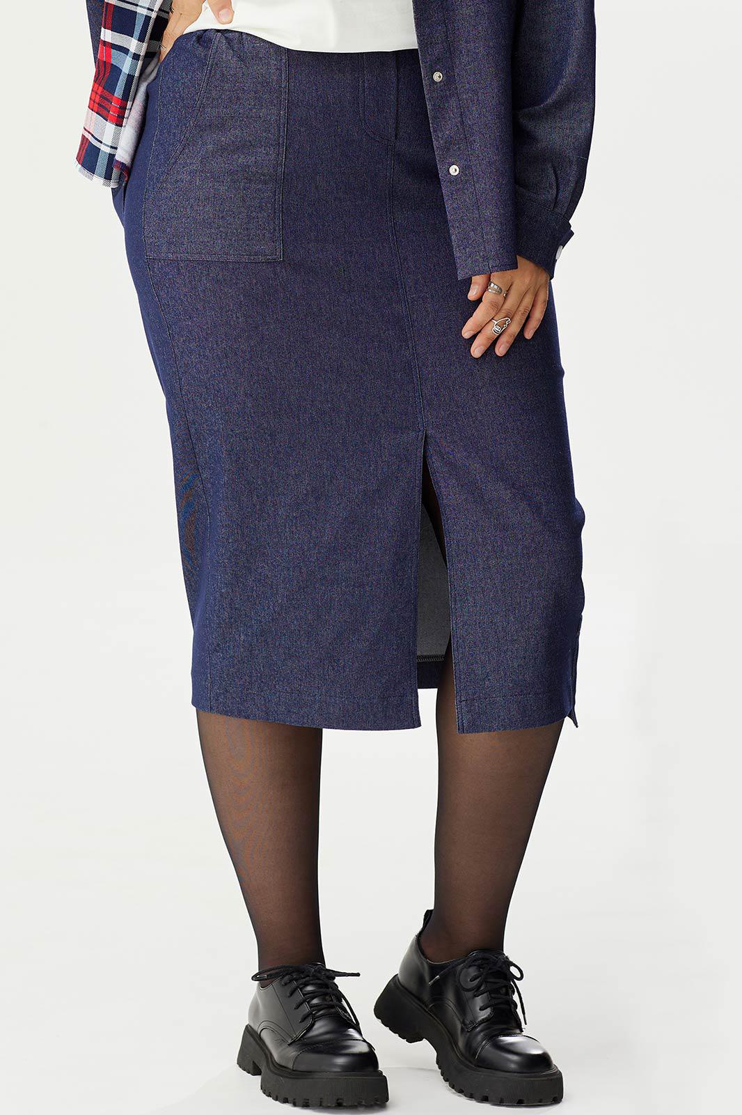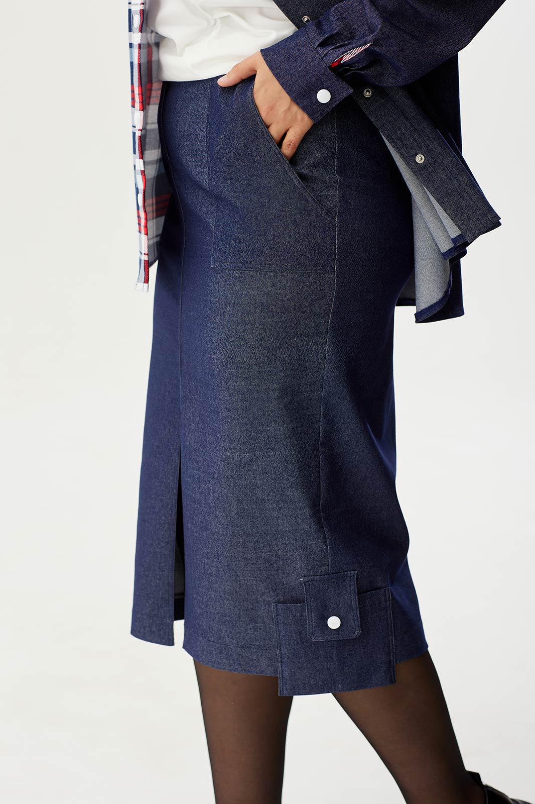 Юбка без подкладки, прямого кроя. Выполнена из хлопкового джинса со стрейчем. Такой предмет гардероба, имеет множество применений в комбинации с другими вещами и обувью. Её прекрасно можно сочетать отдельно и создавать множество различных образов.
