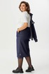 По передней части имеются настрочные боковые карманы, один из которых декорирован металлическим полукольцом в цвет основной ткани. По центру выполнен разрез правильной высоты, создающий элегантную линию по ножке.