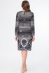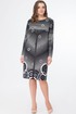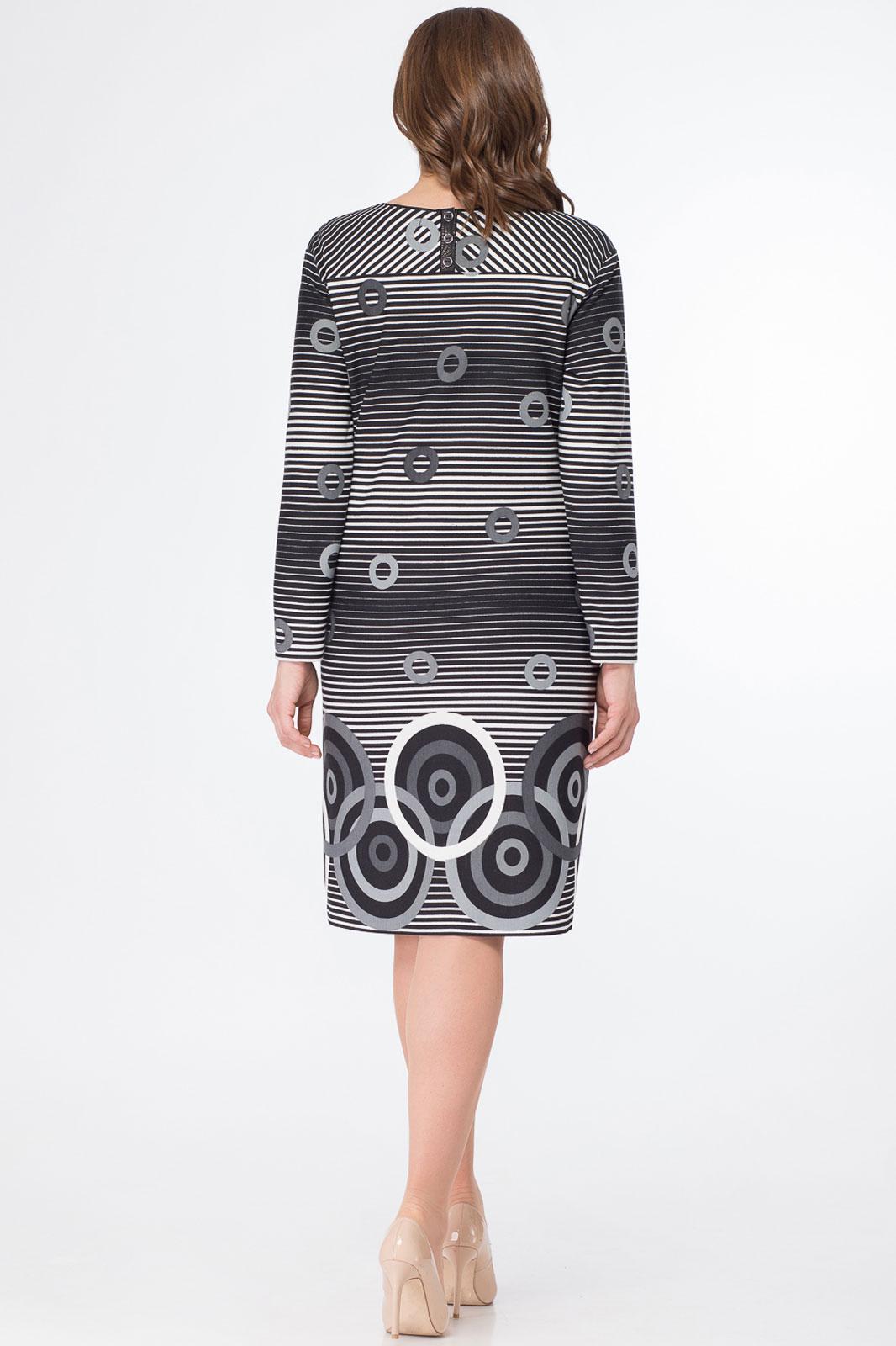 Платье женское полуприлегающего силуэта, со спущенным плечевым поясом и втачными длинными рукавами , с горизонтальной кокеткой и отделочной планкой, круглым вырезом горловины и застежкой по спинке на 3 петли и пуговицы. Платье длиной чуть ниже линии коленас боковыми карманами. На кокетке спереди пришивается декоративное украшение.