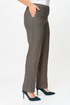 Брюки прямые, классические, с заутюженными стрелками, по переду обработаны карманы с отрезным бочком, застежка на тесьму-молнию и 1 пуговицу. На задних половинках обработаны вытачки и имитация карманов с листочкой, пояс в брюках притачной по боковым швам резинка. Длина брюк от талии по боковому шву 103 см.