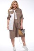 Костюм женский свободного силуэта.Состоит из блузки и шорт.Выполнен из хлопковой ткани.Блузка с центрально-бортовой застежкой на петли и пуговицы,воротник втачной на стойке,одна из полочек выполнена из контрастной ткани и украшена карманом,в боковых швах разрезы ,рукав короткий втачной .Шорты свободные,в боковых швах карманы,пояс на резинке.