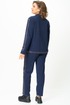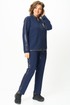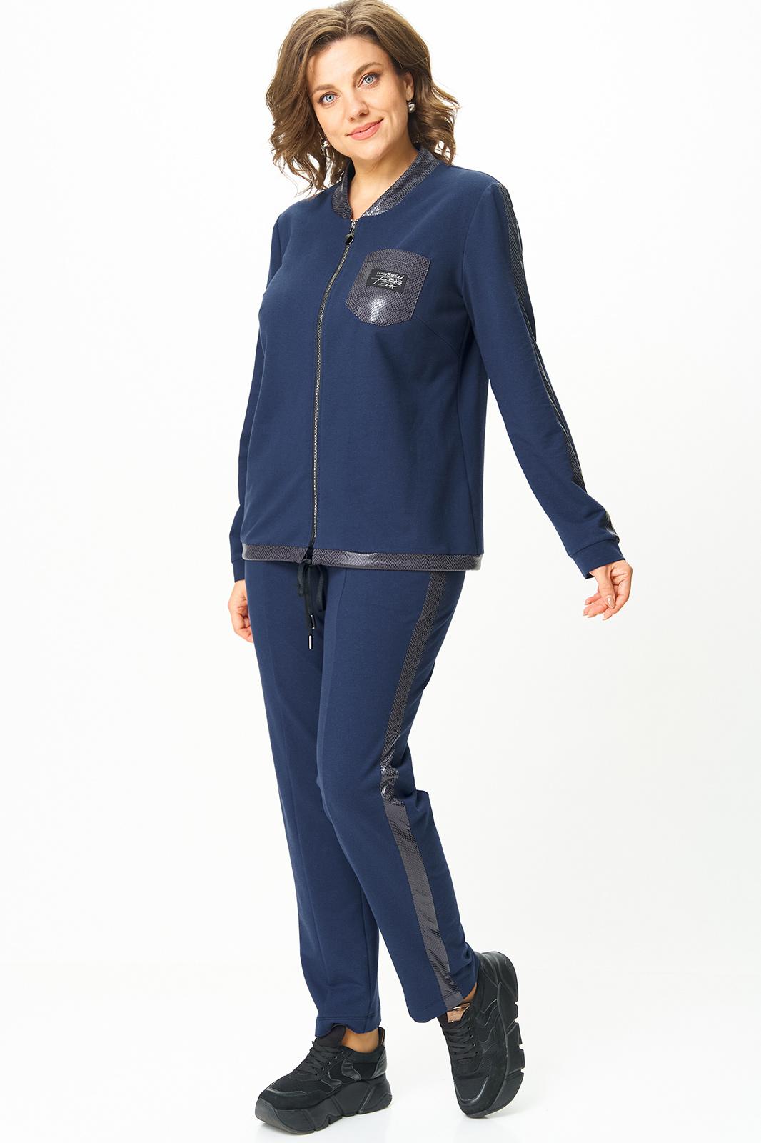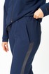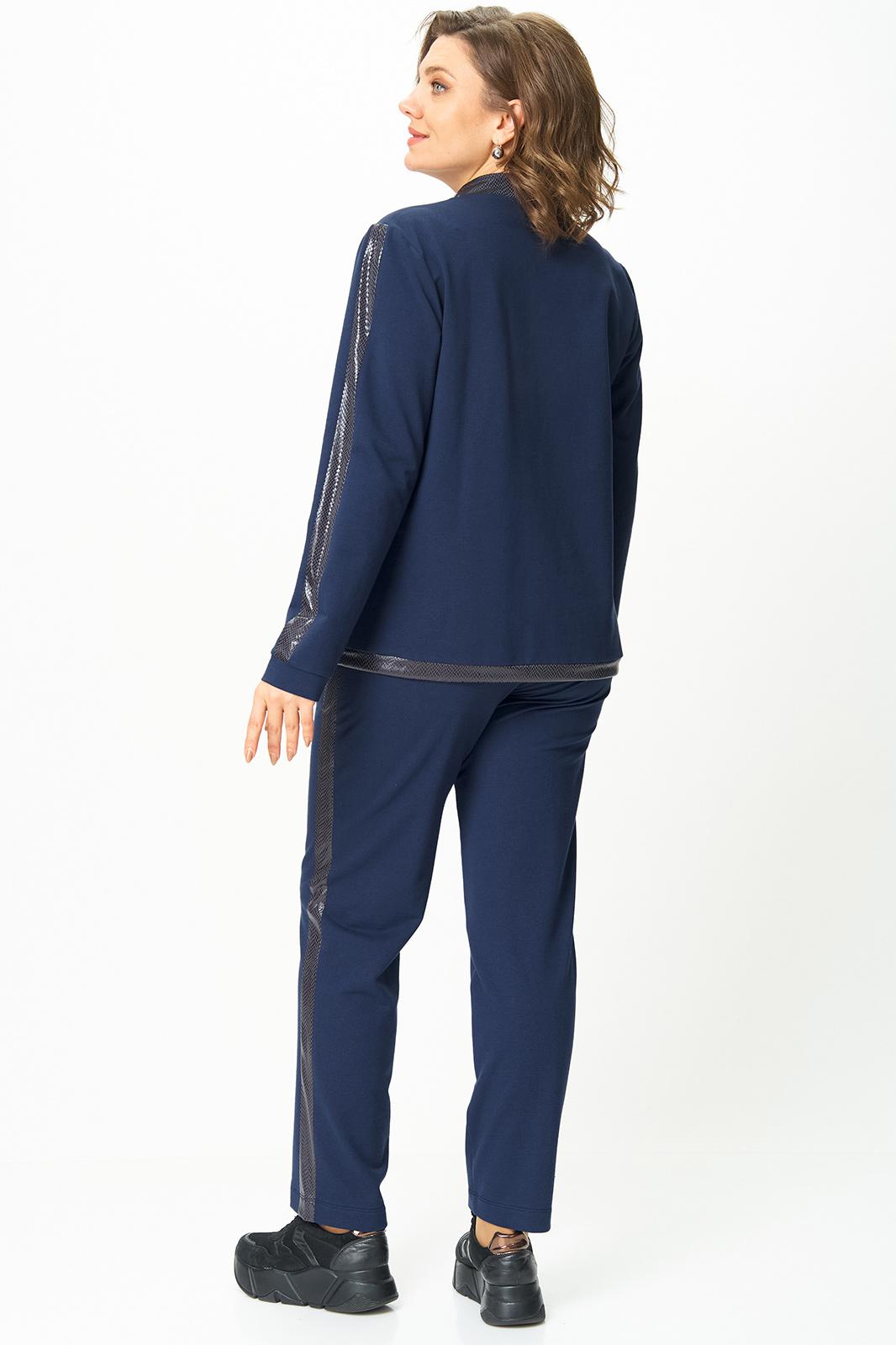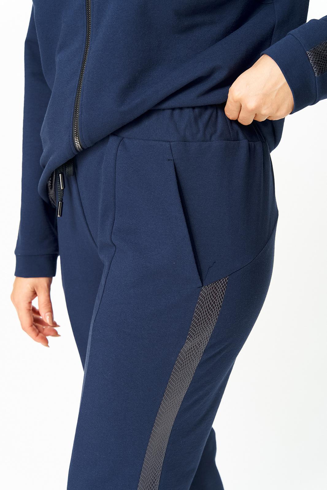 Брюки, зауженные к низу, по верху на задних половинках отрезные кокетки, по боковым швам от кокетки до низа отделочные лампасы, на уровне бедер в швах функциональные карманы. Верх брюк оформлен отрезным поясом с резинкой.