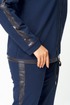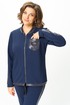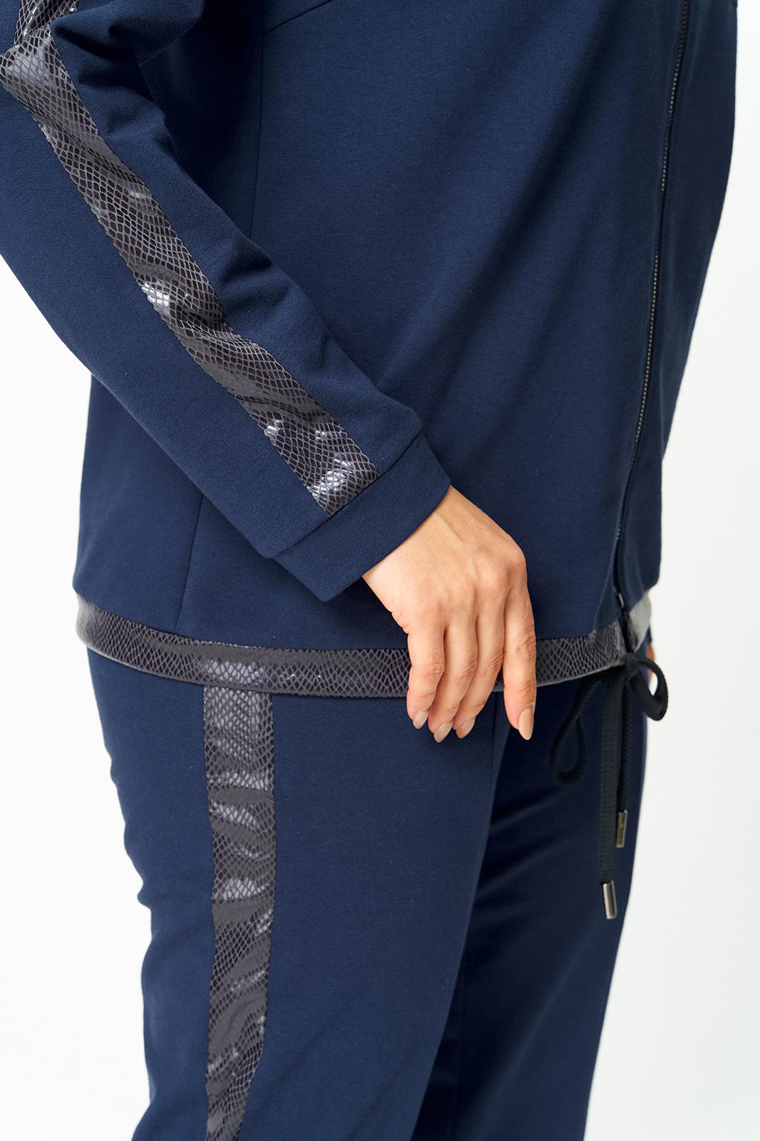 Блузон полуприлегающего силуэта с центральной застежкой на тесьму молнию, с левой стороны на уровне груди фигурный накладной карман с пришивной нашивкой. Горловина оформлена планкой из отделочной ткани. Рукава втачные с отделочным лампасом по центру, низ рукава на манжете из основной ткани. По низу блузона притачная планка с декоративным шнуром.