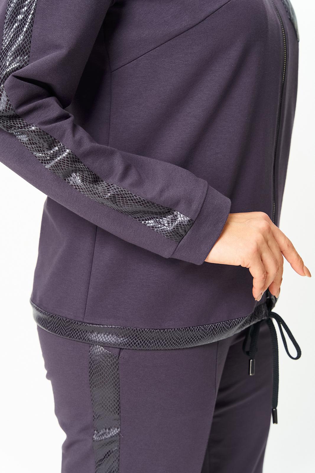 Блузон полуприлегающего силуэта с центральной застежкой на тесьму молнию, с левой стороны на уровне груди фигурный накладной карман с пришивной нашивкой. Горловина оформлена планкой из отделочной ткани. Рукава втачные с отделочным лампасом по центру, низ рукава на манжете из основной ткани. По низу блузона притачная планка с декоративным шнуром.