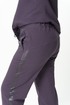Брюки, зауженные к низу, по верху на задних половинках отрезные кокетки, по боковым швам от кокетки до низа отделочные лампасы, на уровне бедер в швах функциональные карманы. Верх брюк оформлен отрезным поясом с резинкой.