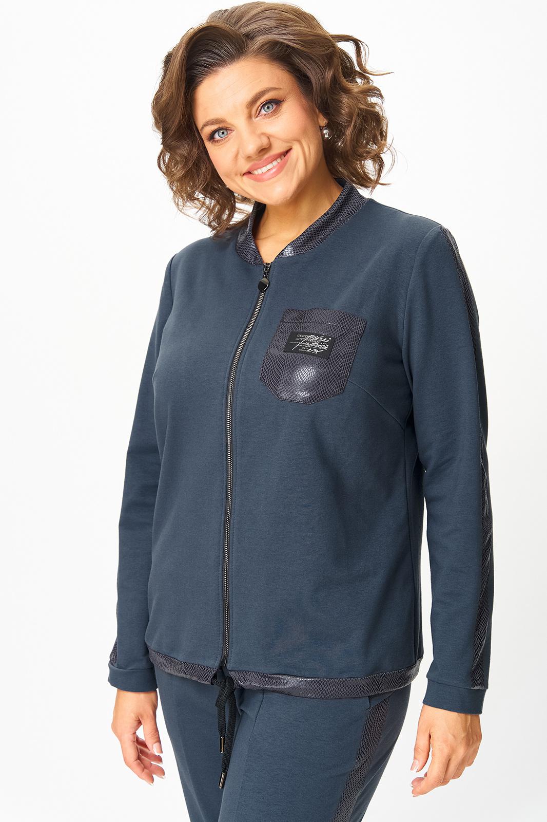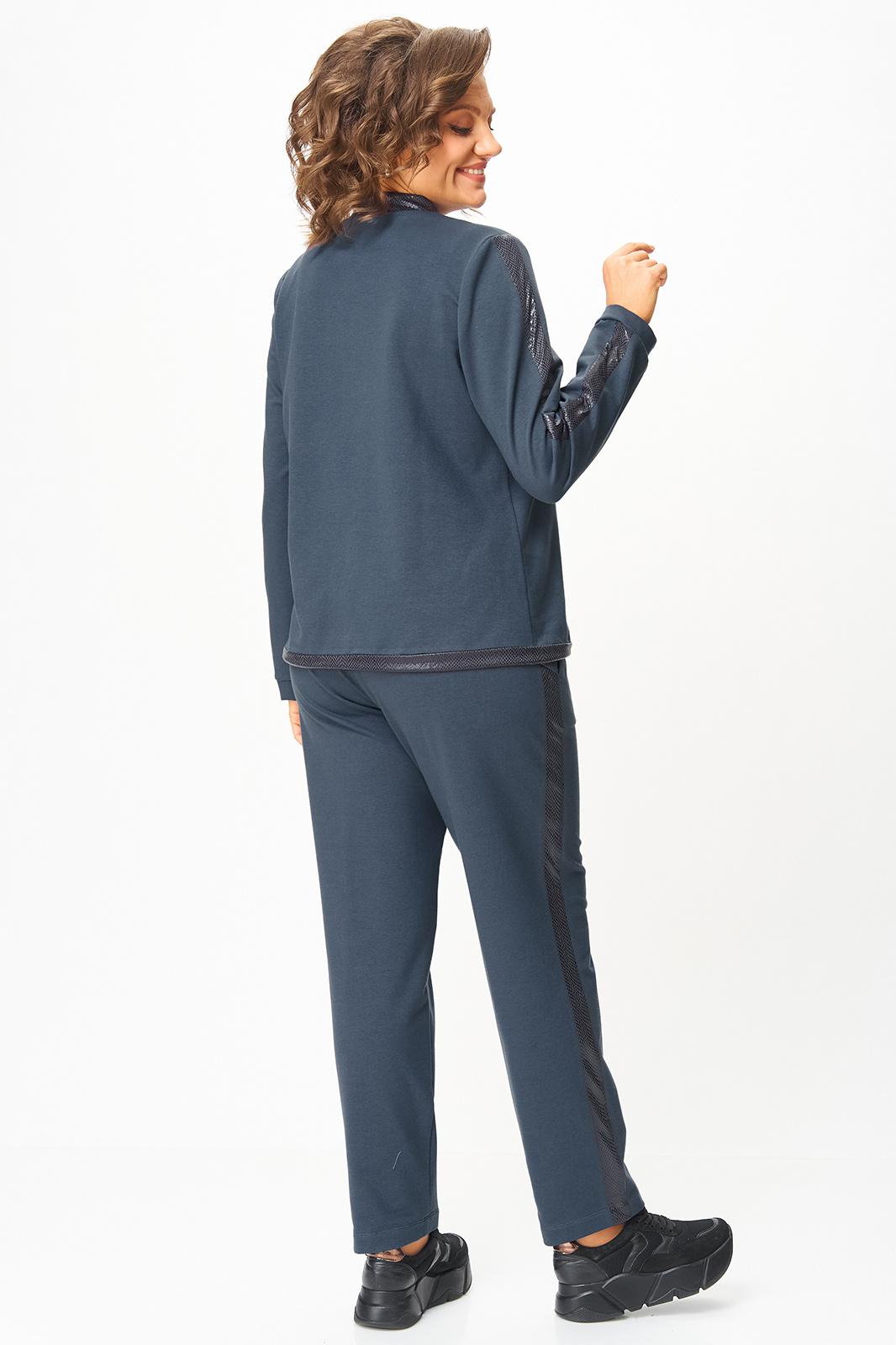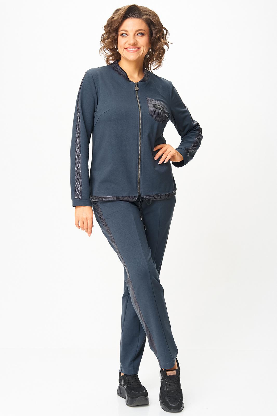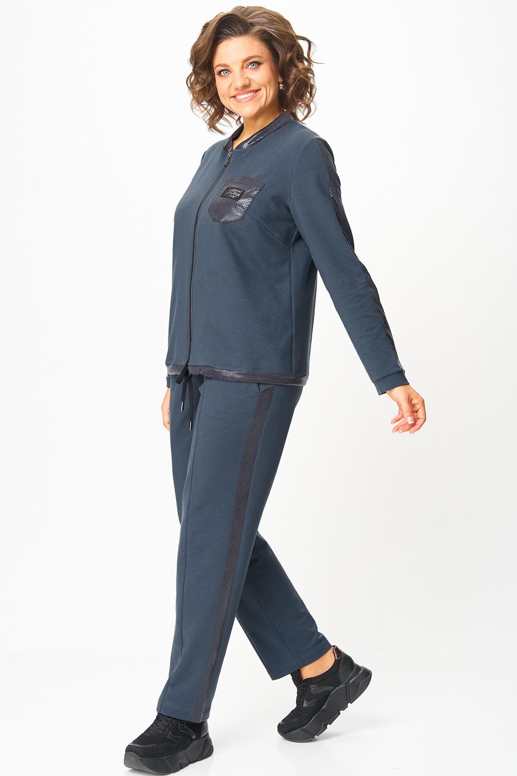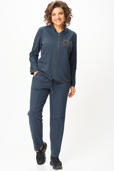 Костюм выполнен в спортивном стиле.