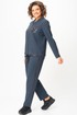 Блузон полуприлегающего силуэта с центральной застежкой на тесьму молнию, с левой стороны на уровне груди фигурный накладной карман с пришивной нашивкой. Горловина оформлена планкой из отделочной ткани. Рукава втачные с отделочным лампасом по центру, низ рукава на манжете из основной ткани. По низу блузона притачная планка с декоративным шнуром.