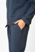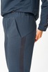 Брюки, зауженные к низу, по верху на задних половинках отрезные кокетки, по боковым швам от кокетки до низа отделочные лампасы, на уровне бедер в швах функциональные карманы. Верх брюк оформлен отрезным поясом с резинкой.