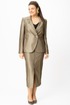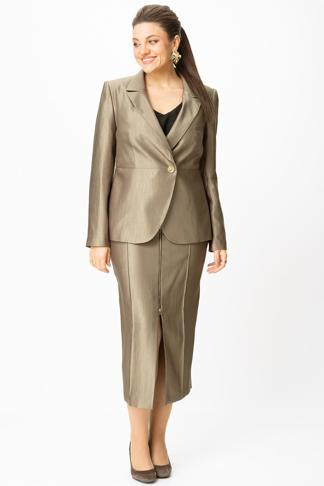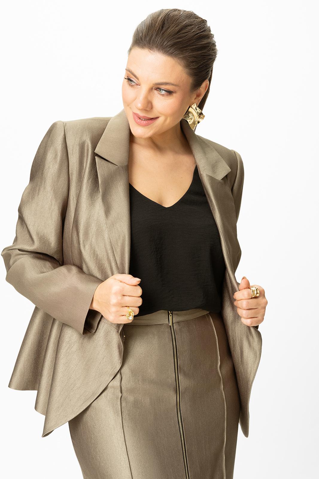 Стильный женский костюм, выполнен в классическом стиле из костюмной ткани с блеском, состоит из жакета и юбки.
