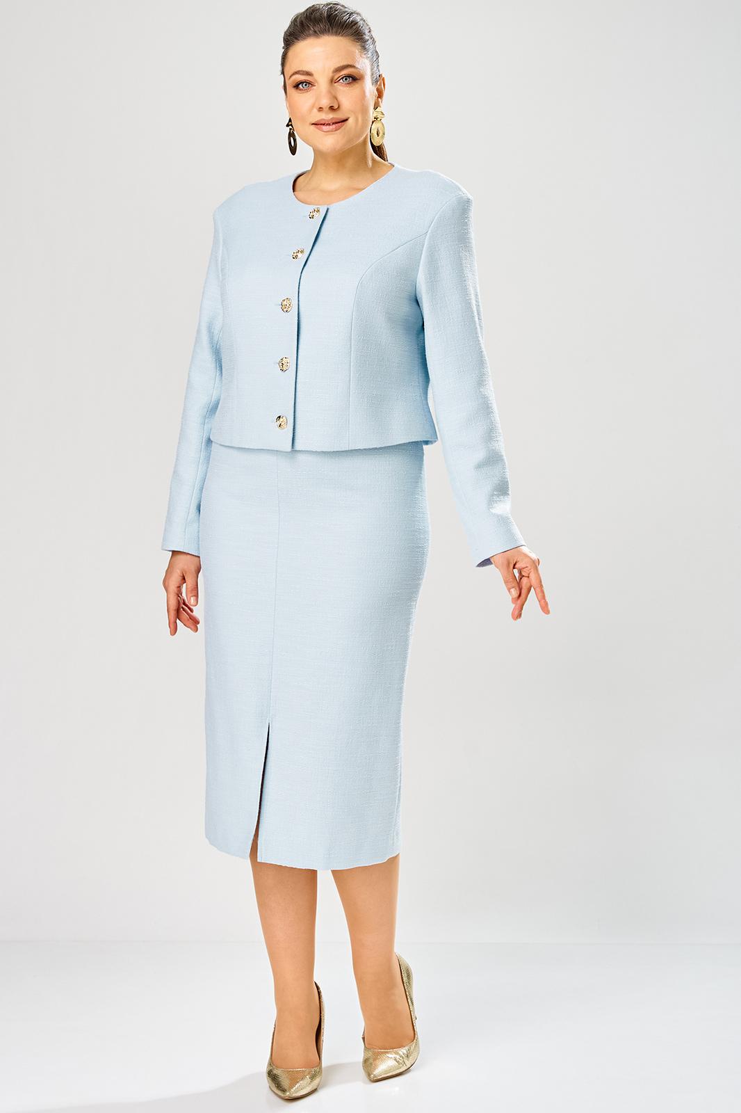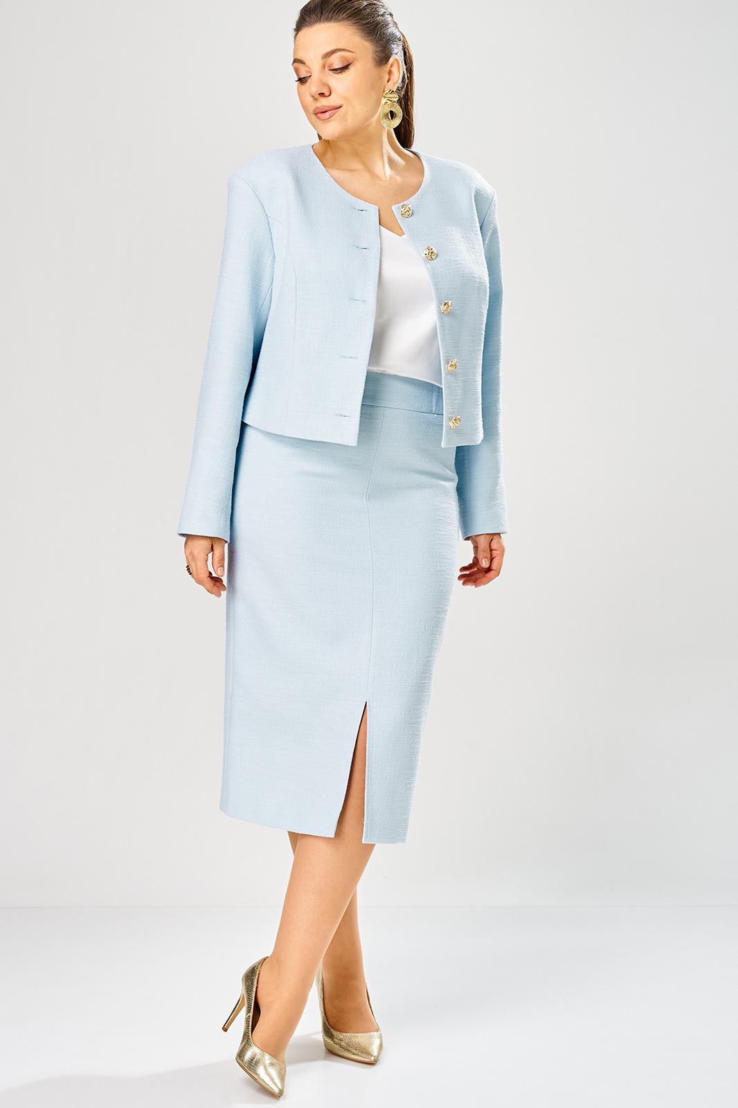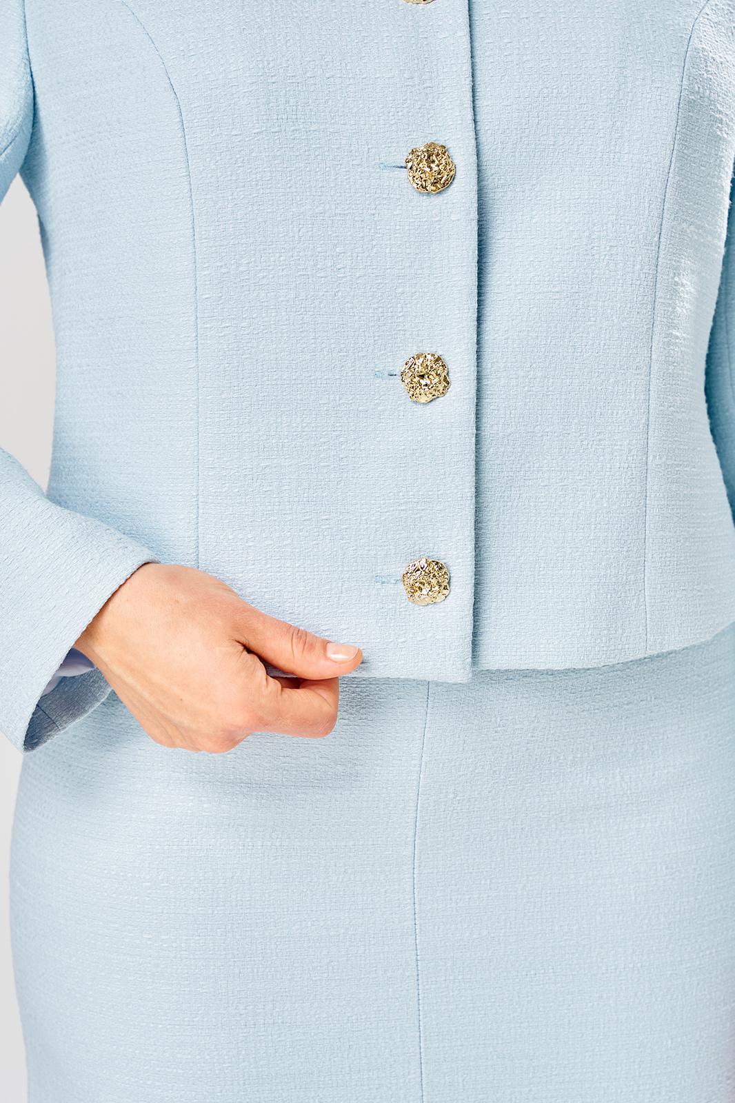 Элегантный женский костюм, состоит из юбки и жакета, выполнен из жаккардовой ткани с содержанием хлопка.
