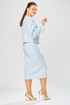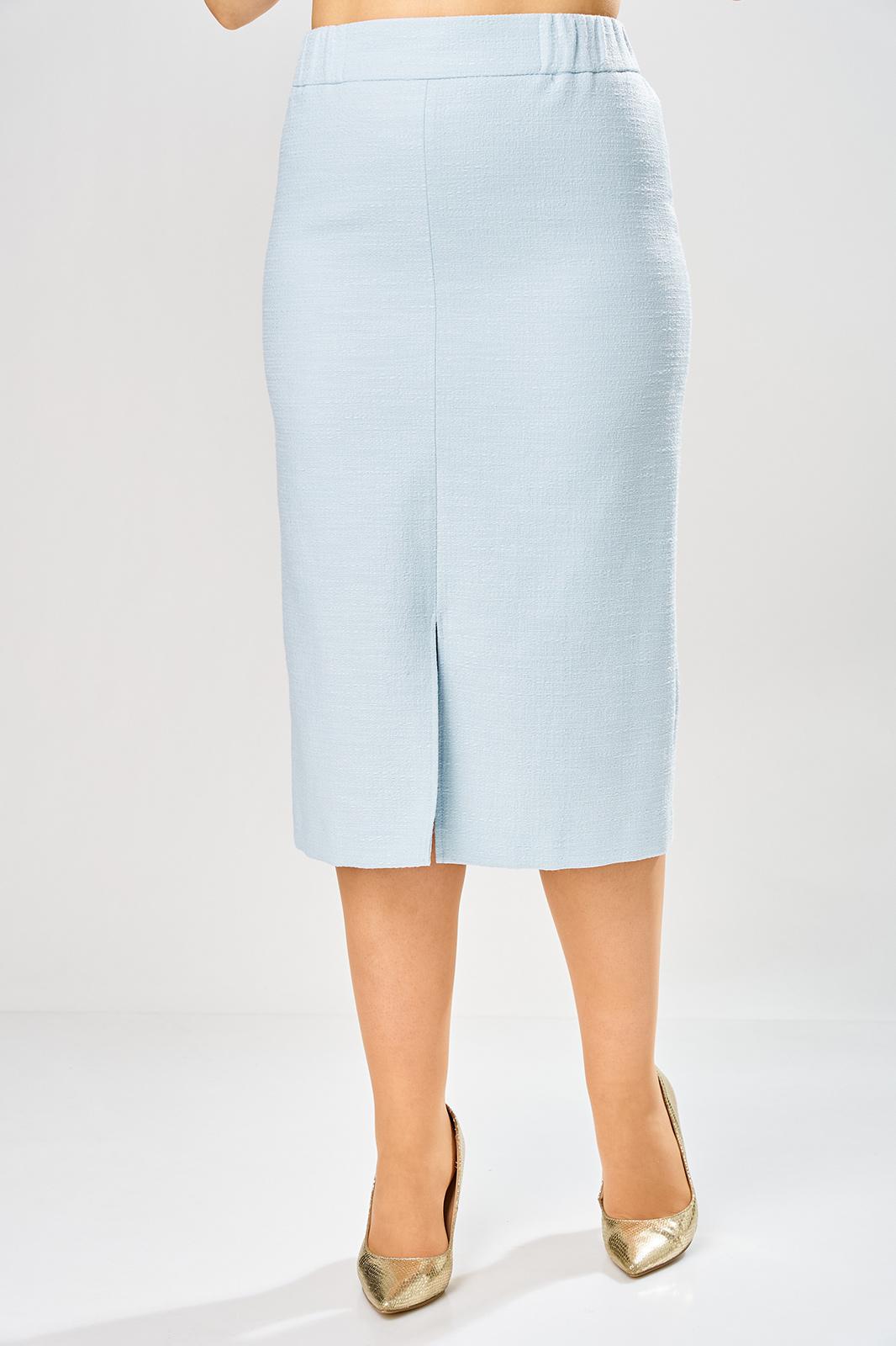 Юбка карандаш, актуальной длины до середины икры. По переду и спинке центральные швы, в переднем шве по низу разрез, по спинке застежка молния, верх юбки оформлен отрезным поясом. Юбка на подкладке.