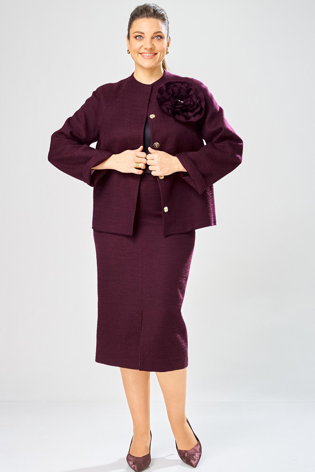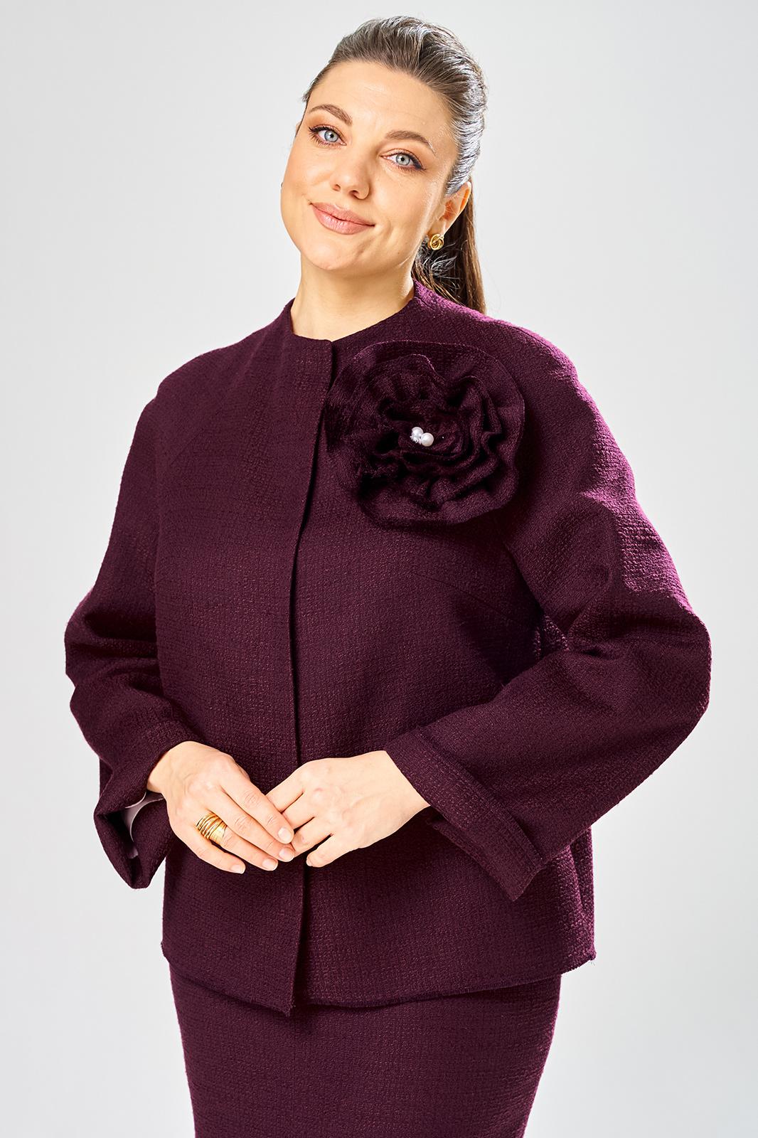 Жакет украшен декоративной розой из основной ткани.