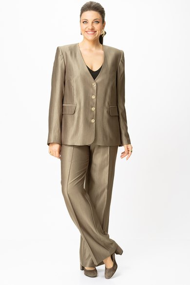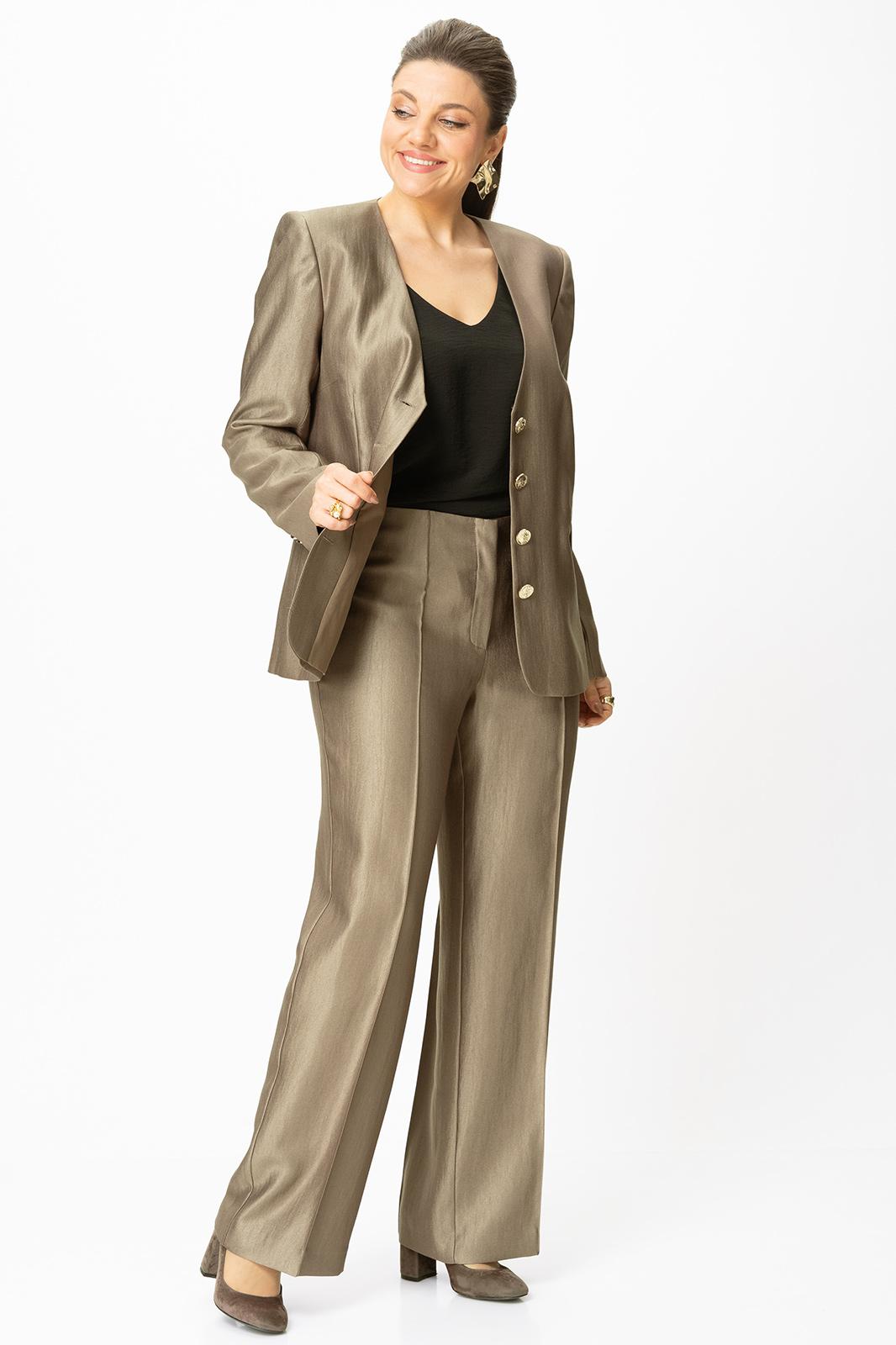 Стильный женский костюм, выполнен в классическом стиле из ткани с небольшим блеском.